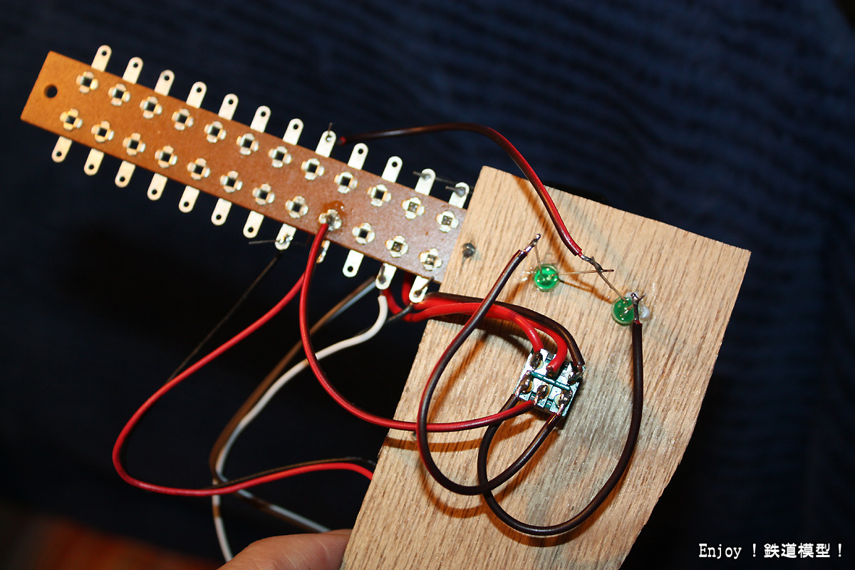 配線はネジ止めしたラグ板に芋付け。LEDは別になくてもトグルスイッチのレバーの位置で切り替え側はわかるのですが、LEDのほうが楽しそうかと思って・・・。(ダブルクロスポイントはどうすりゃいいんだ?(^_^;))