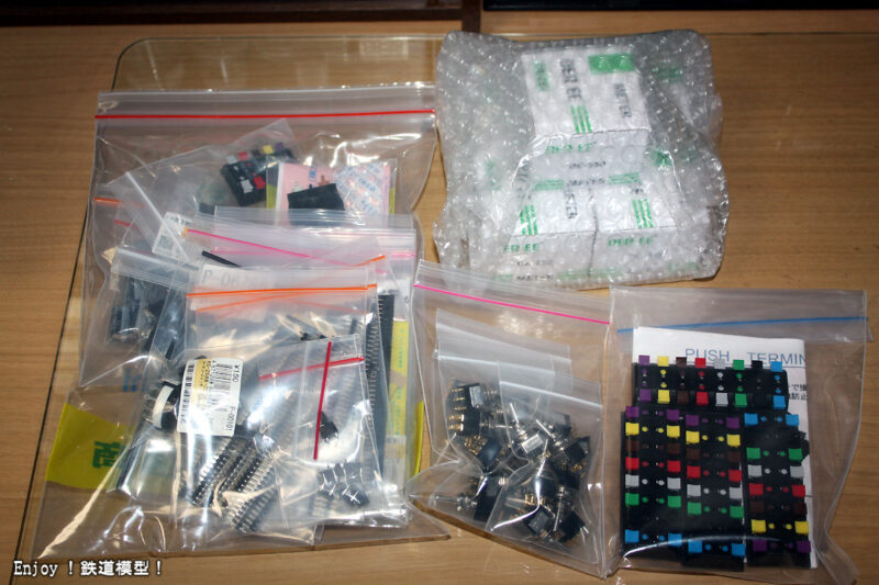 【E】電子パーツが届きました 「Enjoy!鉄道模型!」(2011/7~2018/2) 2014年3月27日(木) 23:592023年12月12日(火) 18:21 先日注文しておいたものが届きました。いつもの秋月電子さんからの、電子パーツです。 今回の注文内容は、電圧計、トグルスイッチ、コンデンサ、LED、ターミナル、ピンソケット/ヘッダ、ユニバーサル基板など。電圧計を5個も買ったので、今回の支払いは軽く一万円超えです。(^_^;) これで、コントロールパネルの製作も始めることができます。(^-^)