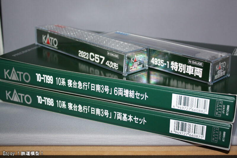 今回届いたのは、KATOの「C57 4次形」と「10系寝台急行日南3号」です。「特別車両」も届きましたが、こちらは明日以降の試走となります。