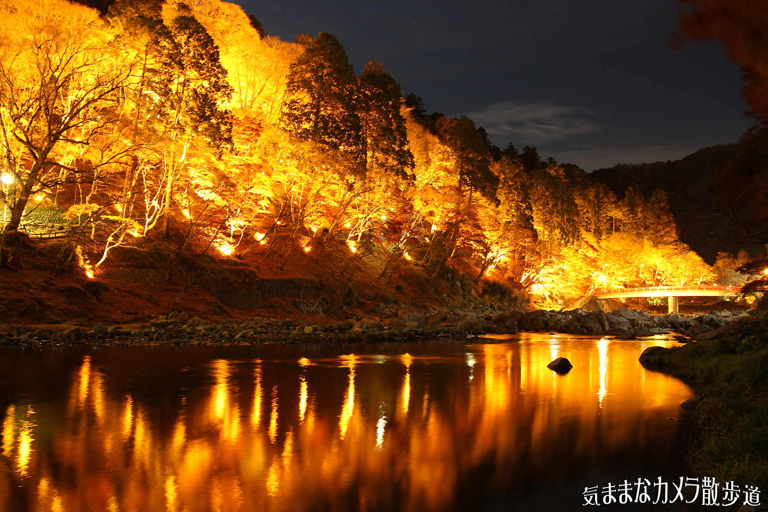 【C】山が燃える 「気ままなカメラ散歩道」(2014/7~2018/2) 2014年11月3日(月) 0:422023年12月12日(火) 18:42 ライトアップされた香嵐渓の飯盛山。 ホワイトバランスを太陽光にして、燃えるようなオレンジ色を出してみました。 ◆撮影日:2012年11月28日 ◆撮影場所:豊田市 香嵐渓
