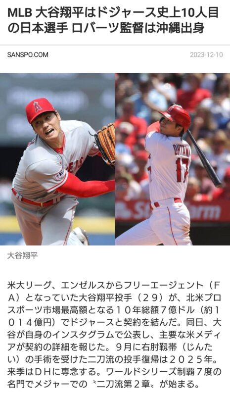 赤から青へ! 徒然の思い 2023年12月10日(日) 9:18 やっぱり、ドジャースでしたね。😆ワールドシリーズの大谷を楽しみにしています。😊それにしても、10年7億ドル(約1015億円)ってすごいですねぇ。