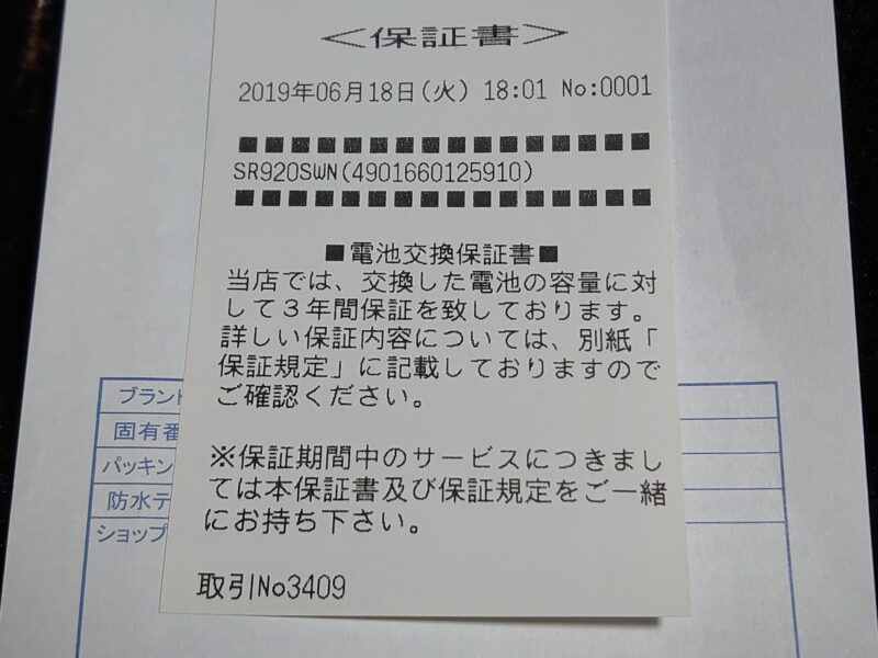最近はウォーキングのために「なんちゃってスマートウォッチ」を使っていたのですが、バンドが切れたのと、ウォーキングはスマホだけで問題ないとわかったので、しまい込んでいた腕時計をまた使おうと思って電池交換をしてきました。店の人から前回の電池交換から3年以内だったら無料で交換しますと言われたので、保証書を探したら前回の電池交換から4年以上経っていました。なので、今回は実費で電池交換をしてあらたな3年の保証書をもらって帰ってきました。買って17年の高価でもない腕時計ですが、気に入っている腕時計なので長く使おうとあらためて思いました。