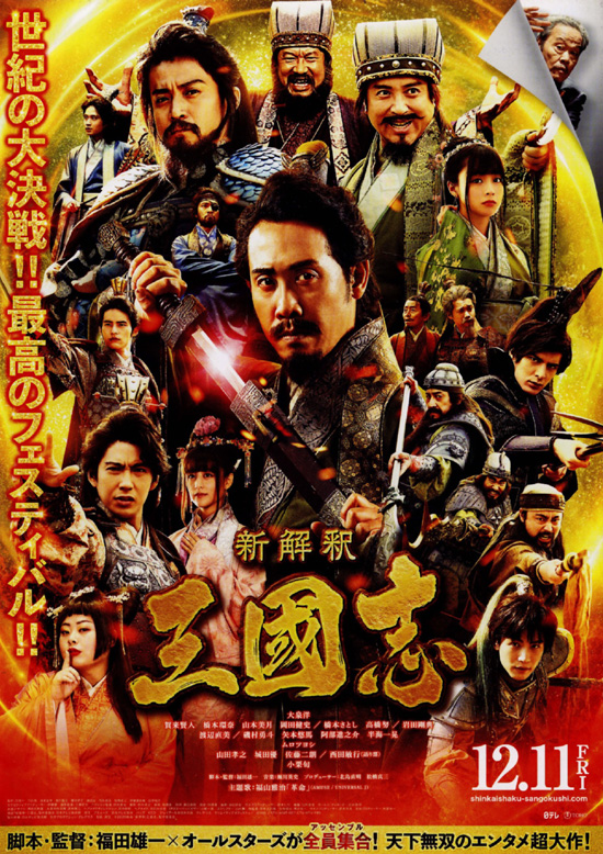劉備玄徳は大泉洋でなければならないという思いの映画だったようで、大泉洋の素の面白さが良く出ている映画でした。他のキャストもわざとらしさを感じさせない弾けた面白い演技で最初から最後までニヤニヤと笑わせていただきました。三国志は横山光輝のマンガを読破していますので登場人物はおなじみで自分なりのイメージを持っていましたが、この映画ではそのイメージは全部崩されてしまいました。カッコイイと思っていた登場人物が実際はこの映画のような解釈のキャラだったら、それはそれで面白い三国志になったと思います。有名な史実をコミカルに描いている作品として、最近観た「首」とついつい比較してしまいますが、「首」を観た時に感じた残念な気持ちや笑いの感覚が合わない違和感などはこの映画にはまったく無くて、自分の笑いのツボと合っている笑いと面白さでした。「水曜どうでしょう」や「勇者ヨシヒコ」を楽しんでいた人は無条件で楽しめると思いました。主題歌は福山雅治で、ここでも大泉洋とのコンビとなっています。