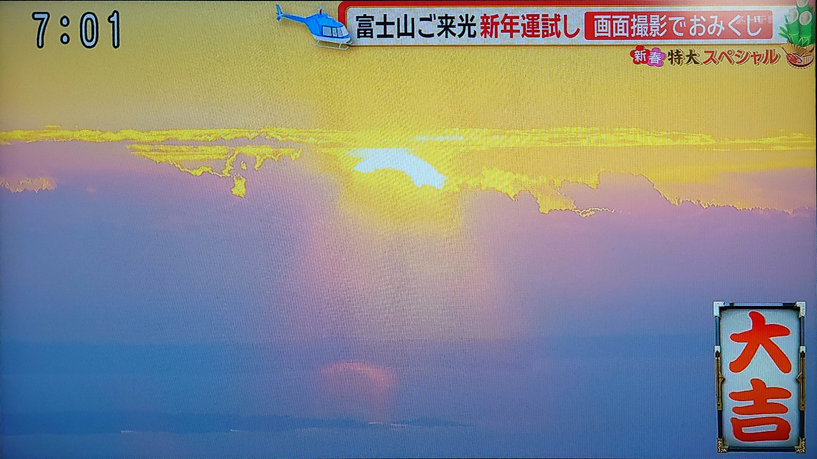 (テレビ越しですが)今年もいい写真が撮れました。おみくじも「大吉」。