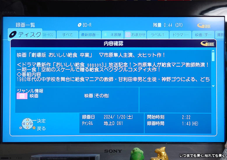 借りてきているDVDの映画は、今回はどういう心境だったのかサスペンスものばかりで、今日の病気への不安や気分落ち込みの自分には重すぎると思って、ちょうど録画したばかりの「劇場版 おいしい給食 卒業」を観ることにしました。私の住む地域では、ドラマ「おいしい給食」は深夜に放送されていて、何度も再放送もあって楽しんで観ていました。今回ドラマ「おいしい給食Season3」がこの地域で深夜に放送される記念に劇場版第2弾(Season2完結編)である「劇場版 おいしい給食 卒業」が放送されたというわけです。劇場版第3弾(Season3完結編)も今年公開の予定だと聞いています。このドラマは、毎回、給食が大好きな甘利田先生と神野の食べ方の戦いが見どころで、甘利田先生の給食に対する思いや、食べる時の心の声と食べ方としぐさがとても可愛いです。それが映画でもたっぷりと楽しめましたし、給食の本質に対する給食センターとのぶつかり合い、宗方先生との心のふれあい、最後の給食となる甘利田先生と神野の絆など、映画ならではのほろっとさせるところも十分描かれていて、とても面白かったです。気持ちが落ち込んでいる時は、こんな映画が最高です。