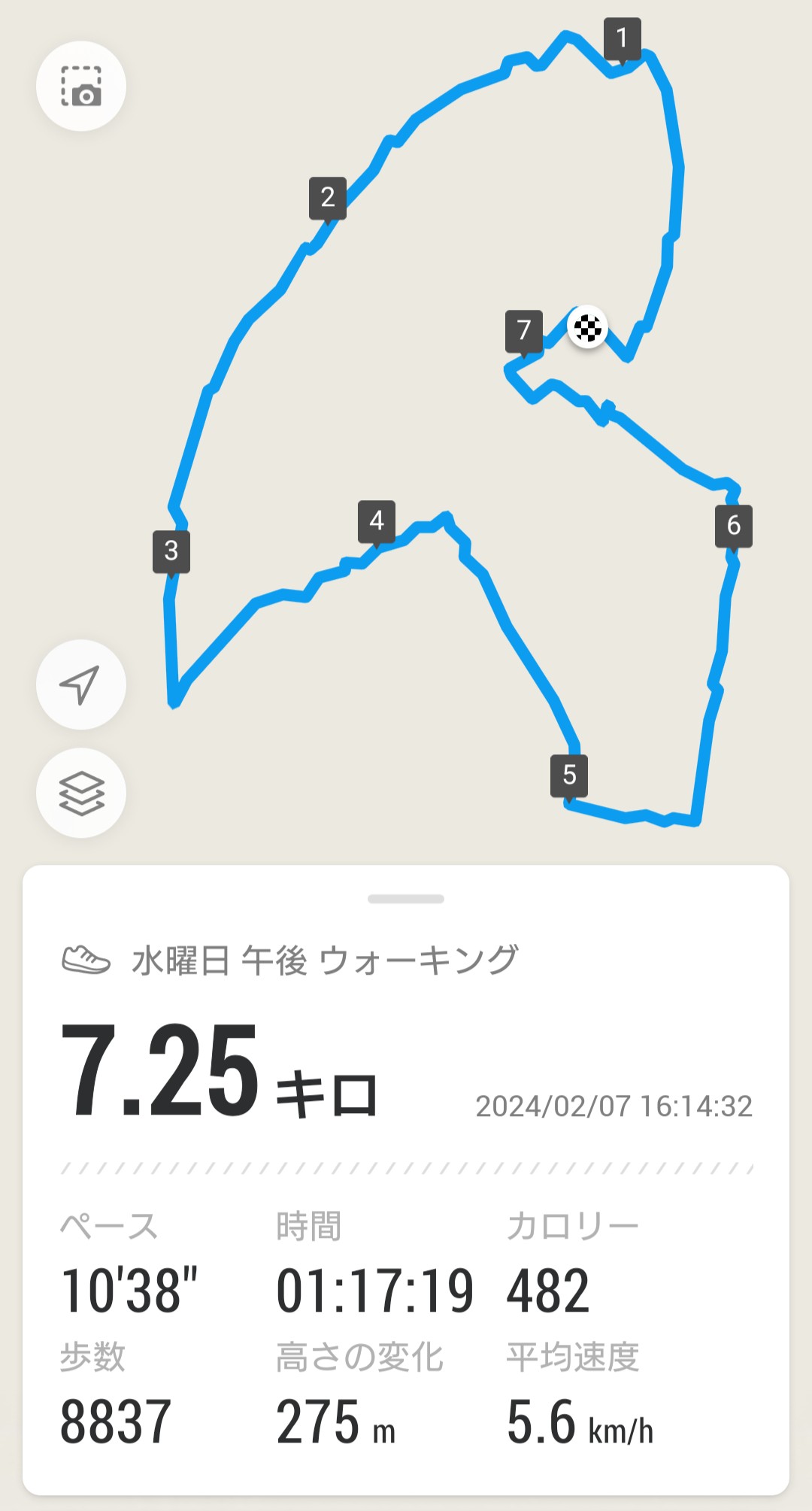 今日の散歩と夕焼け_20240207 運動の話 2024年2月7日(水) 18:142024年7月3日(水) 7:49 今日も風がありましたが、昨日ほどの寒さは感じませんでした。今日はとても調子が良かったので、いつものコースから少し外れて遠回りしてきました。本当はもっと遠回りして歩きたいと思ったのですが、自宅のある方向で緊急車両の音が聞こえてきたので、ちょっと心配になってそれ以上の遠回りはやめて戻ってきました。とても気持ちの良い散歩でした。