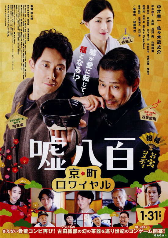 「嘘八百」の第二作目の「嘘八百 京町ロワイヤル」です。今回のお宝は古田織部の茶器ということと、小池と野田の上前を撥ねる役割の橘志野の存在があるということが異なりますが、悪い古美術店を懲らしめるという基本的なストーリーや主な登場人物は第一作と同じです。志野の存在が変化を与えてくれるものの、懲らしめる先の悪徳内容や懲らしめる理由とやり方に大きな変化がなくて、私はマンネリ感を感じてしまいました。中井貴一と佐々木蔵之介のコンビは面白いのですが、もう少しストーリーに大きな変化があっても良かったのではと思いました。今回観たかった第3作目も同じような作品なのか、それとも意表をついた大きな変化があるのか不安と期待が入り混じっています。