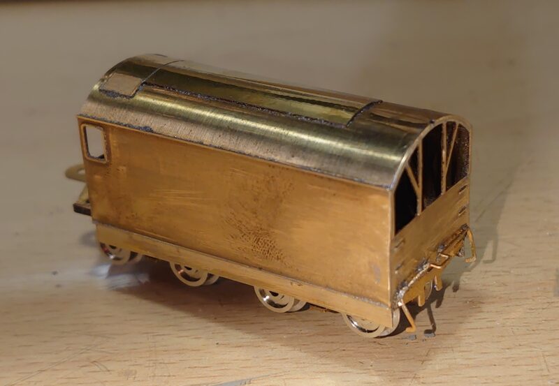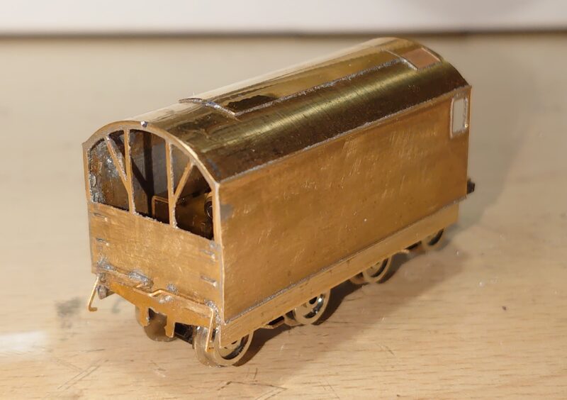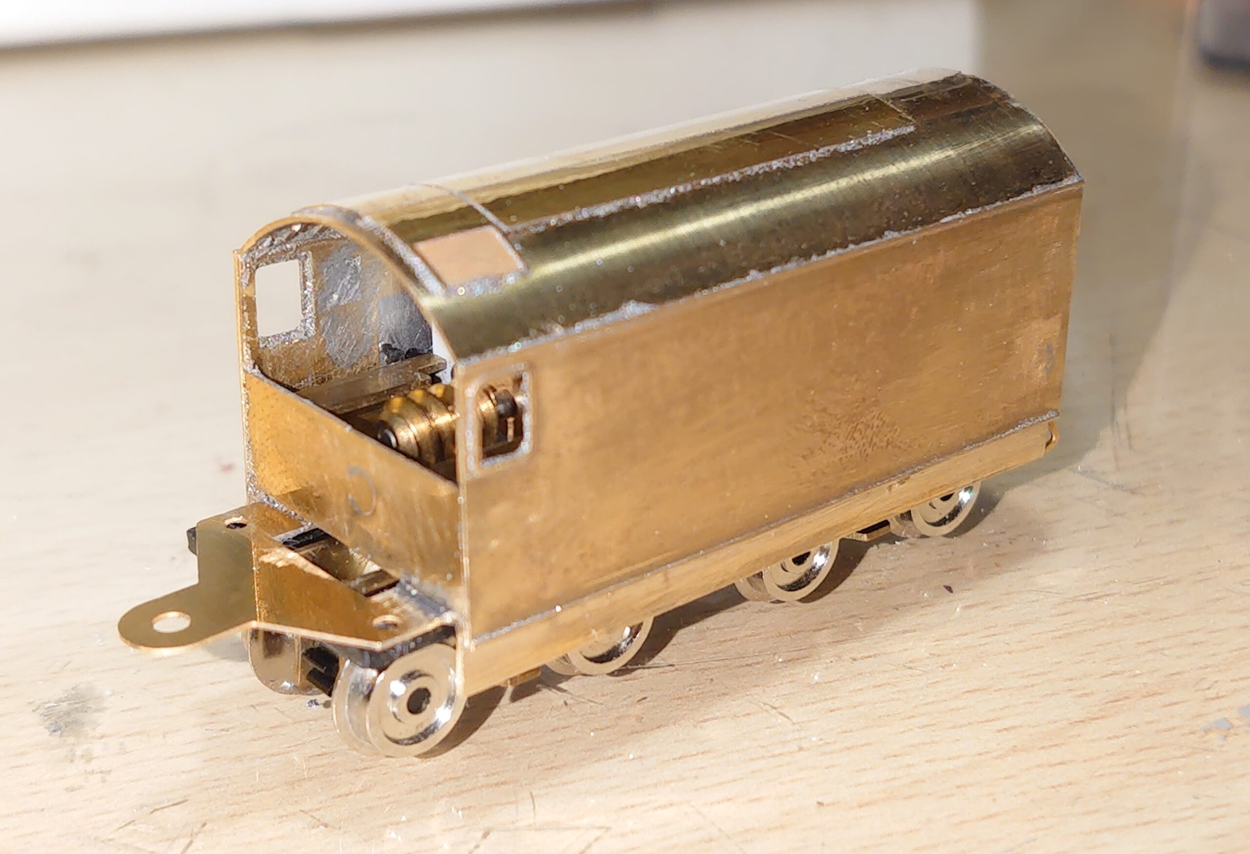 ワールド工芸「C55流線形」製作記_20240225 車両製作 2024年2月25日(日) 14:37 明日と明後日はMRI検査結果の診察の日です。どんな結果でも受け入れようとは思っていましたが、直前になると不安が高まります。考え込むと悪い方向にループしそうなので、朝から模型製作をすることにしました。目の前の作業だけを考えて手を動かしていると、余計なことは考えずに没頭できます。余計なハンダの除去は、ミニルーターを使うともっと早く作業が進むようになりましたが、ちょっと気を抜くとハンダ以外の大事なところを傷つける恐れがあるので要注意です。テンダーの組み立てもあと少しのところまできました。