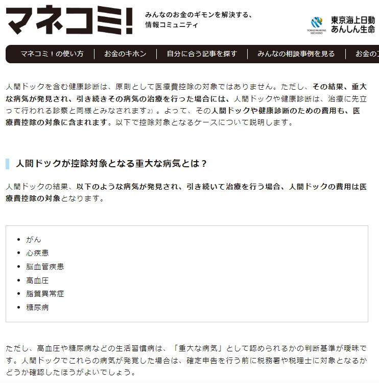 そろそろ確定申告を提出しようと思って、家族に最後の確認をしたら、長女から「人間ドックも医療費控除の対象になるケースもあるみたいだから詳しく調べてみたら」と言われたので、調べてみました。人間ドックであらたに癌などの重大な疾病が発見されたら医療費控除の対象になるというのは確かですが、その線引きはなかなか難しそうです。要精密検査の費用は健康保険も使えるし医療費控除の対象ということは知っていましたが、人間ドックや健康診断はそもそも対象外と思っていたので、考えたこともありませんでした。要精密検査にはなって経過観察にはなりましたが、重大な疾病が発見されたわけではなく、その疾病の治療を引き続き行うわけではないのでやっぱり難しそうというのが私の判断です。一般国民はこんな細かいことでも考えて税金の還付を考えるのに、政治家はどんぶり勘定で非課税にできるのですから、馬鹿らしいと言えば馬鹿らしいことです。しかし、それを言い出せばすべてが崩れますし同じレベルの順法意識になり下がってしまいますので、きちんと正しく申告することが大事なことです。