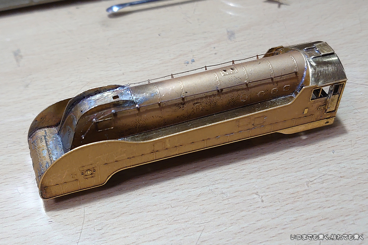 今日は、3月7日に届いたワールド工芸さんから送っていただいた不足パーツ(ヘッドライト、煙突、テールライト、ダミーカプラー)を取り付けました。今回のパーツは正しい位置で固定してハンダ付けするのが難しいのと、余分なハンダの除去や整形に時間がかかり、13時半から作業を初めてこの4個のパーツ取付が終わったのは18時でした。しかも最後でホワイトメタル製のダミーカプラーに熱を与えてしまって溶かしてしまう始末。初心者で常識やノウハウもまだまだ不十分です。製作途中の写真や説明はホームページに順次掲載しています。