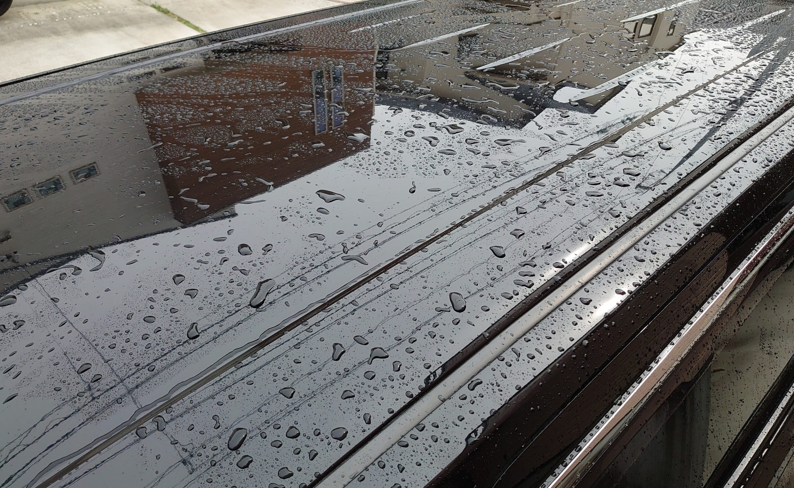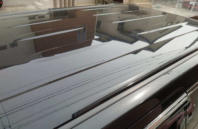 一昨日は雨、昨日は強風でヴェルファイアの洗車とワックスがけがのびのびになっていましたが、今日は穏やかな曇り空で絶好の洗車とワックスがけ日和でしたので、ヴェルファイアをきれいにしました。夕方から日がさしてきましたが、その頃には駐車場は日陰でまったく問題ありませんでした。3時間半くらいかかりましたが、まったく疲れもなく時間に追われて焦ることもなく、しっかりと細部まで作業ができました。黒塗装はワックスをかけると深みが出てより美しく感じるのでやりがいがあります。写真は作業前と作業後を順番に掲載しています。ルーフは、作業前と作業前の水はじきの状態と作業後です。9ヶ月もワックスをかけていないわりには、まだよく水をはじいています。細かく作業すると新たなキズにも気づきます。バンパーに新しい大きな飛び石キズがありました。時間のある時にタッチアップしておこうと思います。最後の写真は愛用のワックス拭き取り用糸モップなのですが、今はカーショップで売っていないんですよね。これが私は一番使いやすいのですが、どこか売っていませんでしょうか。