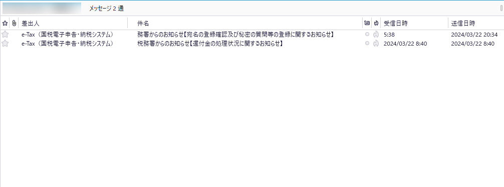 タイミング良くe-Tax(国税電子申告・納税システム)から2通のメールが昨日と今朝届きました。宛先のメールアドレスが一つは私の通常に利用しているアドレス、もう一つはネット利用のための捨てアドレスなので、簡単に本物か偽物かはわかるのですが、同じようなタイミングで届くというのがなんか気持ち悪いですね。こういうのが来るとどんなふうに騙そうとしているのか興味がわくので、正式なものとそうではないものを比較してみました。だいたい迷惑メールは文字が大きいというのが傾向ですね。しかし、3月22日に送られてきて有効期限が3月19日とは。こういうところも詰めが甘いですね。それとe-TaxとE-Taxがごっちゃになっていますし、そもそもアカウントを登録しろというのもおかしなものです。この程度のレベルのものなら絶対に騙されませんが、そのうちに本物かどうか区別のつかないものも出てくるのでしょうね。気を付けないといけません。