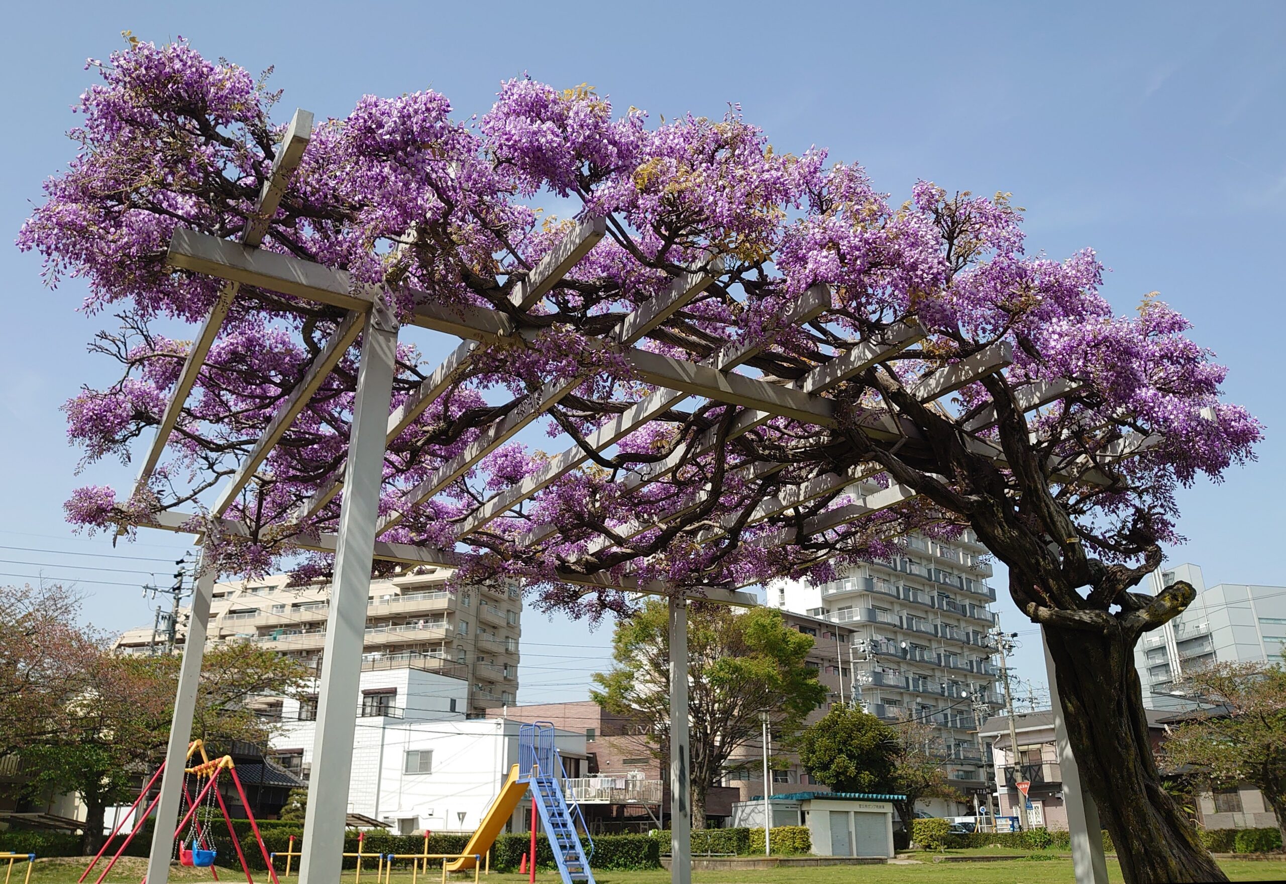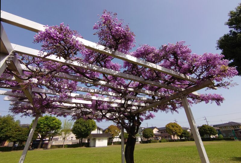 近くの公園の藤の花 好きな花/藤 2024年4月17日(水) 15:30 所用で車である公園の脇を通ったら、数日前に比べて藤の花がかなり咲いてきていたので、車を止めてスマホで写真を撮っていました。いい季節になってきました。