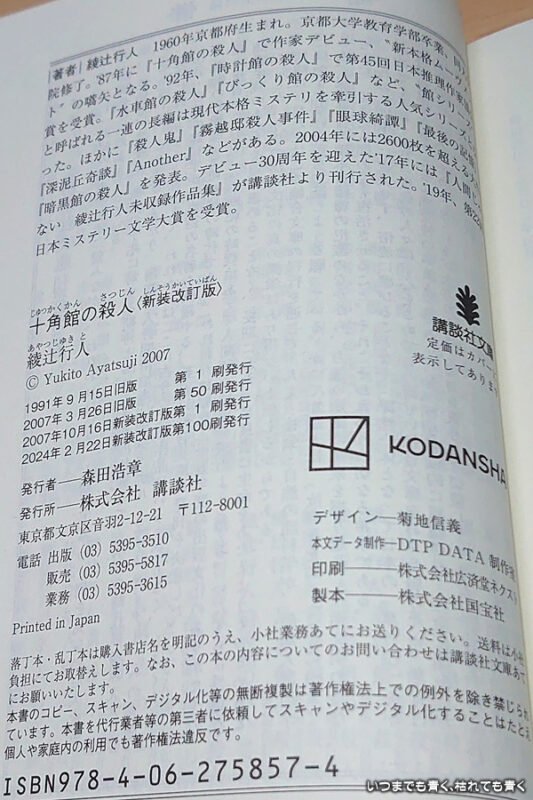 ストーリーは、十角形の館の建つ孤島に訪れた推理小説(ミステリー)研究会の大学生7人が連続殺人事件の被害者になっていくという内容です。その孤島は十角館を建てた中村青司が半年前に青屋敷で焼死したという島で、殺人事件は中村の娘の一年前の死が絡んでいて、誰が何の目的でその殺人事件を起こしたのか最後までわからないという展開です。