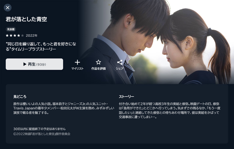 ストーリーは私は好きなストーリーで面白いと感じました。修弥を助けようとして何度もその日を繰り返すことにより、修弥の心の中を知ったり、自分の考え方(一日の大切さや毎日が単なる繰り替えしではないということ等)に変化が出てきたりと考えさせてくれることもありました。そして最初の事故が実は真実だったというオチも不思議な経験の説明になっていて良かったと思いました。実結役の福本莉子の可愛らしさもよく出ていました。キャストの一番目(主役)が福本莉子ではないことが不思議です。福本莉子は、「思い、思われ、ふり、ふられ」でもとても良かったですし、これから公開の「ディア・ファミリー」も楽しみです。