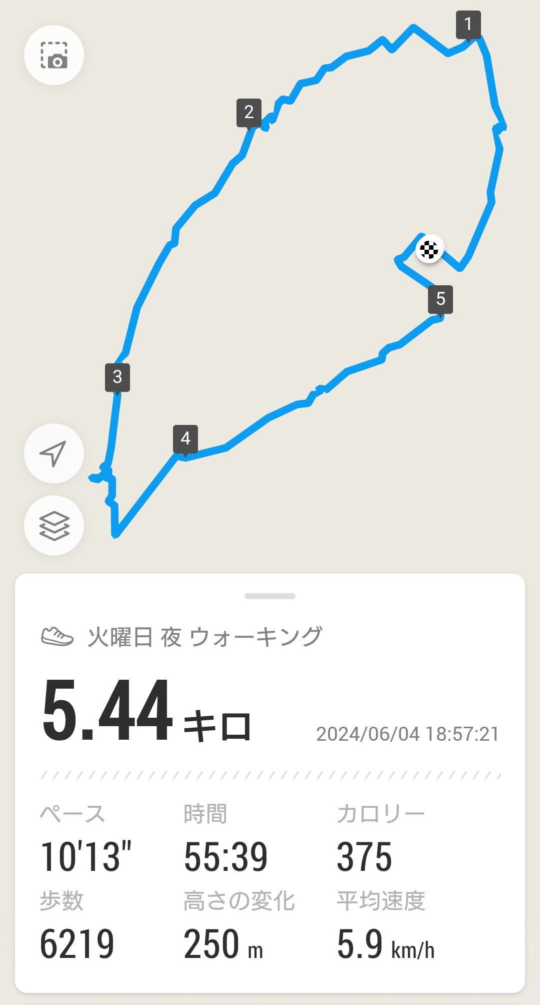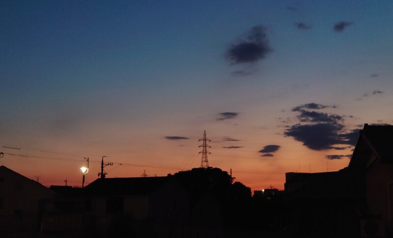 今日の散歩と夕焼け_20240604 運動の話 2024年6月4日(火) 21:122024年7月3日(水) 7:48 今日の夕方の散歩は、昨日と違って足が重くて5kmで戻ってきました。たぶん昨日の疲れが足に残っていたのかもしれません。今日こそ無理しないで自重したほうがいいということです。今は7時を過ぎてからの夕焼けです。