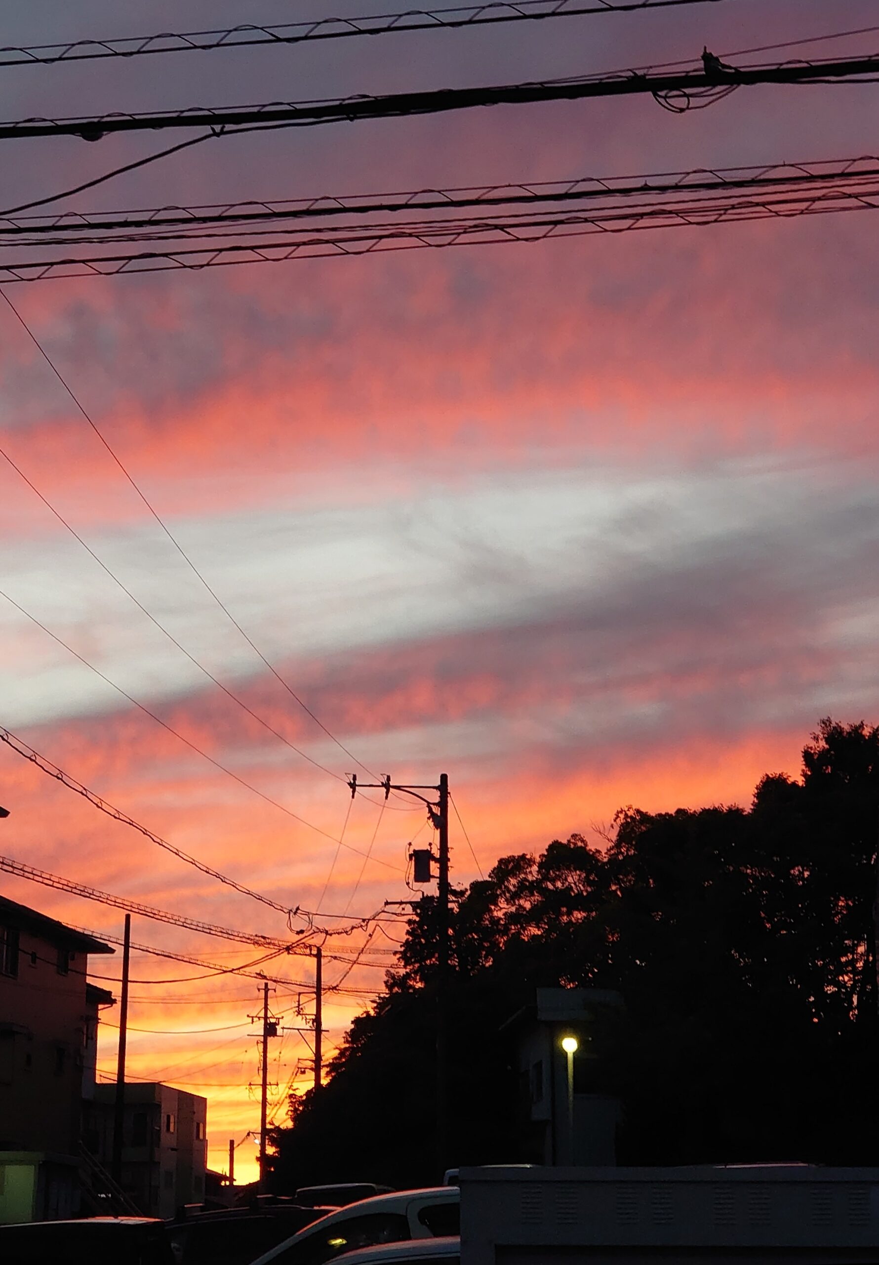 今日は写真では表せないくらい広範囲のきれいな夕焼け。