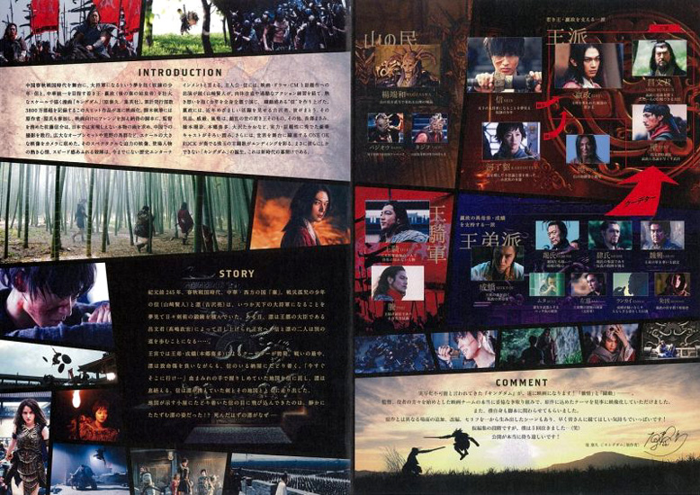 中国の西にある秦の国の戦争孤児、信と漂は大将軍になることを夢見て日々剣術の鍛錬に励んでいたところ、漂に王宮入りの話が来ます。しかし、その役目は秦王の影武者で、王宮のクーデターにより漂は命を落とします。信は、大将軍になるという夢を漂から託されてその夢を実現していくというストーリーです。
