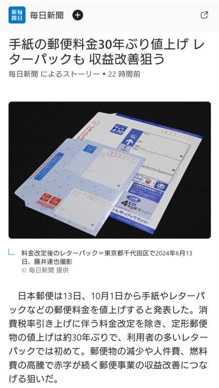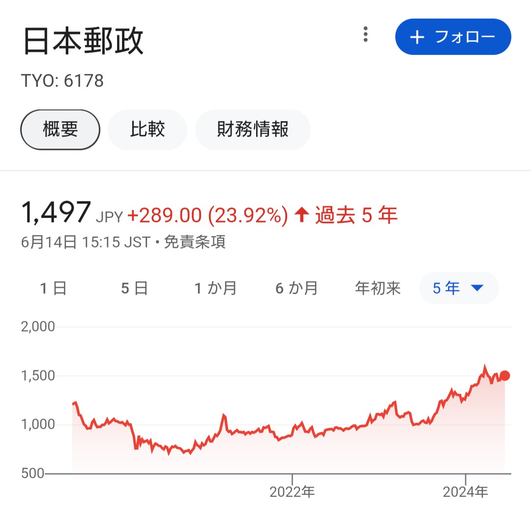 日本郵便、値上げ お金の話 2024年6月14日(金) 18:56 株のことを何も知らない時に高い値段でなんとなく買ってしまった日本郵政株(黒歴史)、2015年売り出し時の価格まであと少し。収益改善頑張れ、日本郵政!(今思えば4年前に買い増ししておけば良かったと思いますが、その頃は先行き真っ暗で損切りばかり考えてました。安い時こそ勝負!ができる度胸があれば・・・)
