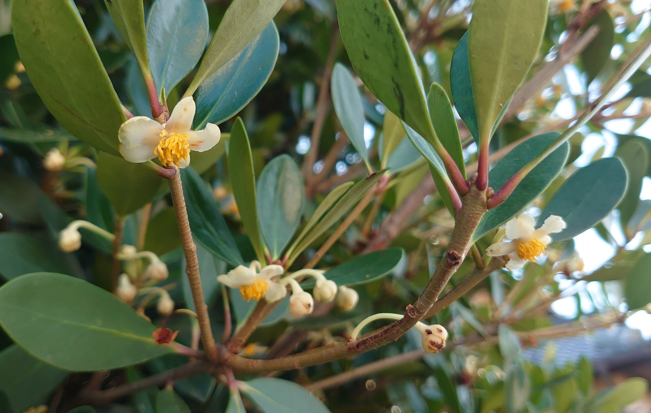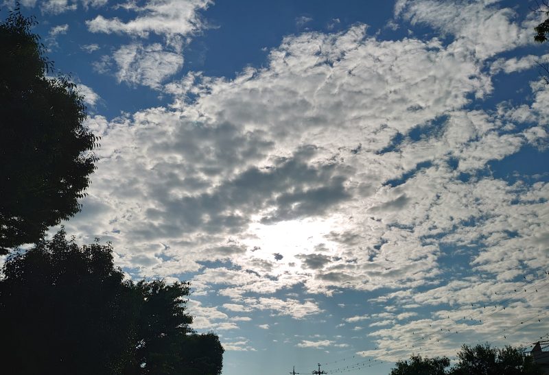 朝の散歩と今日の空_20240704 運動の話 2024年7月4日(木) 7:36 今朝は歩いているうちに雲がなくなり日差しの強い朝となりました。今日も暑くなりそうです。いつもの2kmコースを2周して家に戻ろうかと思った時、逆向きにもう1周歩いてみようかと思いたって、結局3周歩きました。いつも歩いている道を逆から歩くと、思った以上に坂道だったことに気がついたり、目につかなかった花に気がついたり、視点を変えることの大切さをこんなことで再認識しました。いい香りがする花を見つけて調べたらモッコクという木の花でした。キンモクセイを思い出す甘い香りでした。