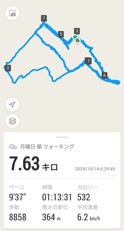 今朝はひんやりはしていますが、肌寒いと言うほどではありません。最初の3kmは、息が安定せず汗もにじんできて体が重い感じでしたが、徐々に調子が戻り、なんとかいつも通りに歩き切ることができました。疲れを感じると、すぐに肩が落ちてくるので、肩を上げて手をきちんと前後に振ることに集中して歩きました。歩き始めに調子が良くないのは、身体のことで最近また気になるところがあるので、メンタル的にちょっと後ろ向きになっているのかも知れません。今朝も変な夢(便器ととうもろこし←個人的な備忘メモ)を見てしまったのも、その影響かもしれません。そんな後ろ向き気分の中、散歩とシャワーの後の体組成計での体内年齢が52歳と出たことで気分は少し前向きになりました。今からドジャース野球観戦で元気だそうと思います。