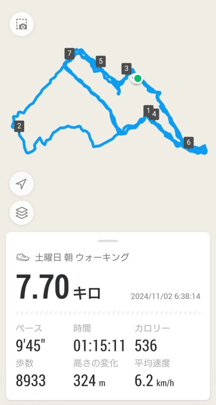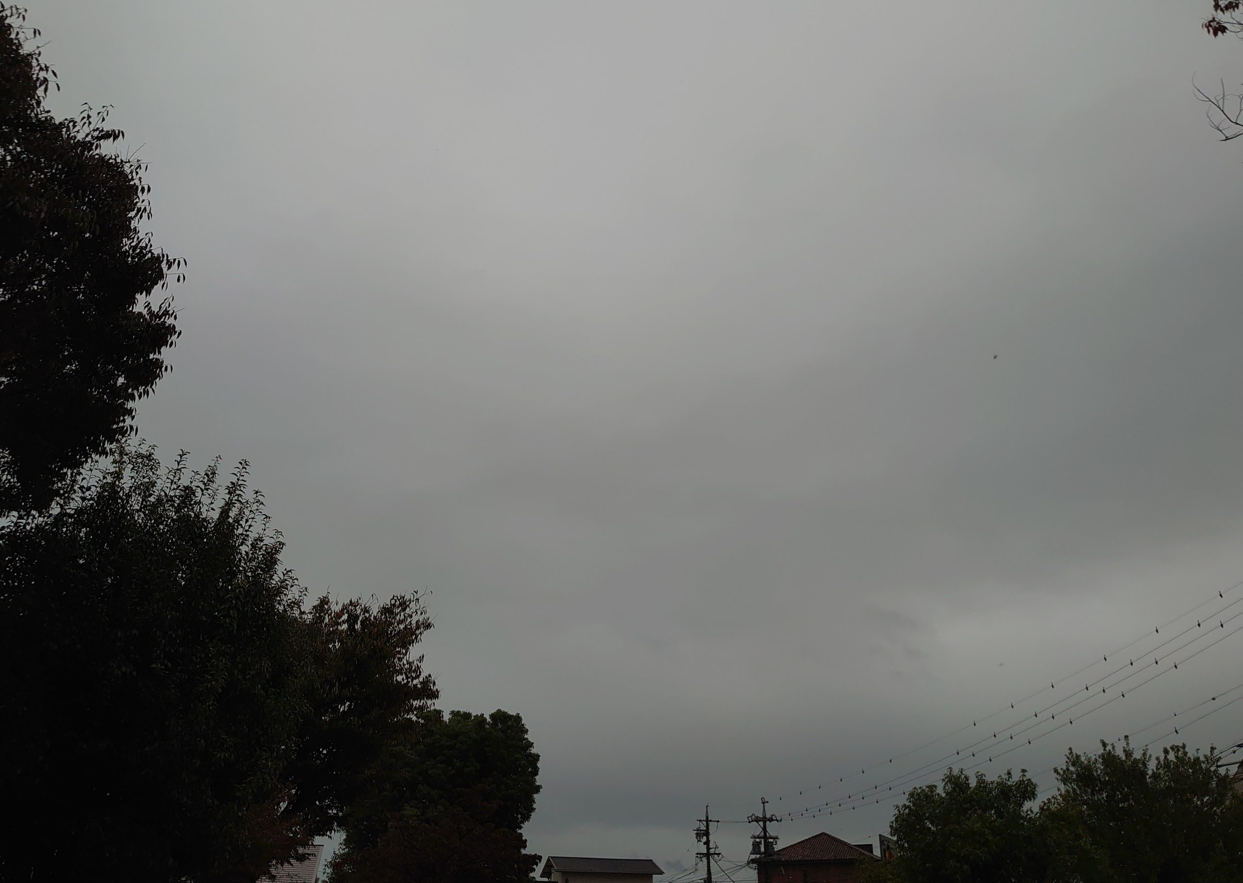 朝の散歩と今日の空_20241102 運動の話 2024年11月2日(土) 8:55 小雨が降ったり止んだりの朝でした。気温は17度くらいで寒くはありません。今日は遅いスタートでしたが、土曜日なので8時近くなっても通勤や通学の自転車少なく助かりました。散歩のあとの計測で、体内年齢が51歳と出ました。この調子だと40歳台を目指せるかもしれません。新たなモチベーションとなりそうです。昨日の高圧洗浄機で汚れを落としたあとを見てみると、まだらになっているところが多く、追加作業が必要のようです。したところとしていないところの差の写真も撮っておきました。