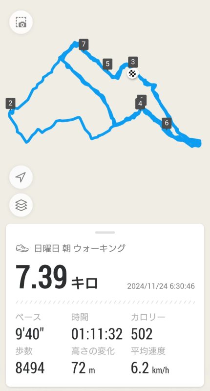 朝の散歩と今日の空_20241124 運動の話 2024年11月24日(日) 10:10 今朝の気温は4度と出ていましたが、そんなに寒くは感じない朝でした。ただ手の冷たさはかなりのもので、手袋がほしいと感じてしまうほどでした。ニャンコ屋敷の前では久しぶりに黒ニャンコを見ましたが、黒ニャンコは以前から警戒心が強かったこともあり、写真を撮ることができる距離になる前に逃げてしまいました。朝食は今まで帰りにコンビニでパンやおにぎりを買っていましたが、先日、食パンと納豆とスライスチーズを買ってきて、昨日からそれに変更です。これだと、1日の私の朝食代は117円とかなりの節約になります。