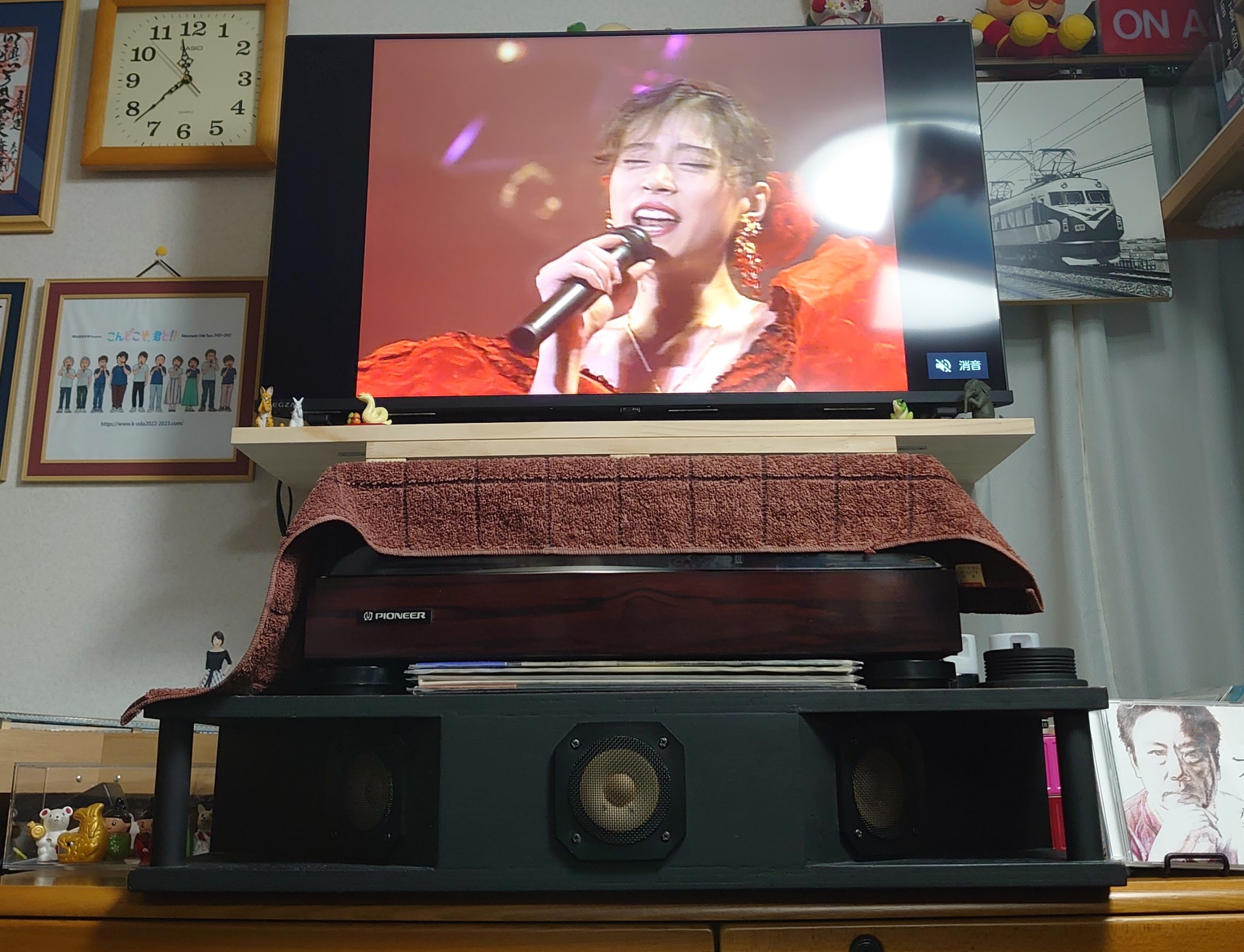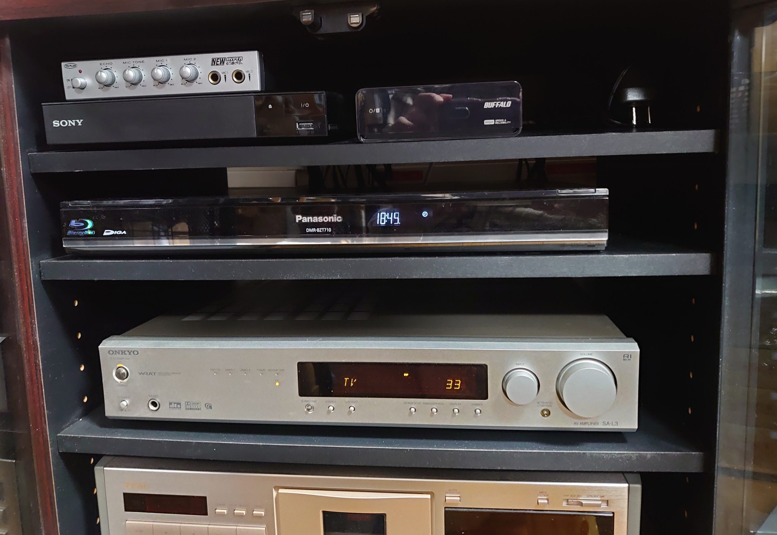 KENWOODのプリメインアンプKA-990Vが音が出なかったので、テレビの音を出す自作マトリクススピーカーを鳴らすためのアンプをハードオフで物色してきました。今日は犬山通院の日だったので、名古屋のハードオフに立ち寄ったら、ジャンク1,100円でオンキョーのSA-L3というAVアンプが「音出ました」というコメント付きで売っていたので、迷わず買ってきました。早速テレビとマトリクススピーカーに接続すると、ちゃんと鳴りました。雑音も無し、機能も正常、リモコンで全操作可能、ということで、良い買い物をしました。もともと低価格アンプなので音質は平凡ですが、マトリクススピーカーを鳴らす、つまりスピーカーマトリクスサラウンドを楽しめるというだけで十分なのです。この自作スピーカーは、オーディオの神、故長岡鉄男氏の設計で、それを忠実に作ったものです。映画を視聴してみるとなかなかいい感じです。