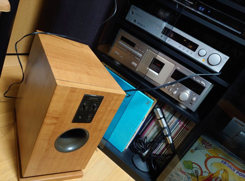 今日も長女の資格試験のアッシーで名古屋に行ったので、空いた時間でハードオフめぐり。目的は、昨日買ったAVアンプがマルチチャンネル対応なので、自作スピーカーの弱い低音を補完するためのサブウーファーを見つけること。いろいろお店をまわって、YAMAHA製やDENON製のものに心惹かれたものの、買おうという気持ちにまでにはなりませんでした。しかし、最後に立ち寄った昨日AVアンプを買ったお店に同じONKYO製のSL-105というデザイン的にも美しいサブウーファーがあって、これが気に入り購入を決めました。ふたつあって4,400円と3,300円。小さな傷の有無の差のようで、音を出してもらいましたが問題なかったので3,300円の方を選択しました。重さが12.5kgもあるので、また足に落とさないようにだけ注意して持ち帰りました。家で視聴したらとてもうまくつながって音に厚みが出ました。また安いいい買い物をしました。