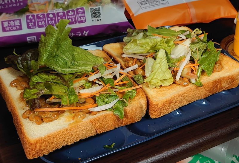 朝食、試行錯誤 食物の話 2025年2月20日(木) 10:26 もっと野菜が食べたいし食べなくてはと思っていたので、カット野菜を買ってきて数日前から納豆の上に乗せて食べるようにしました。そのうちに卵も乗せたいとか欲が出てきそう。こんなものでも朝起きてすぐに作るのは面倒かなと思うので、朝ごはんを用意してくれる奥様には感謝しましょうね。
