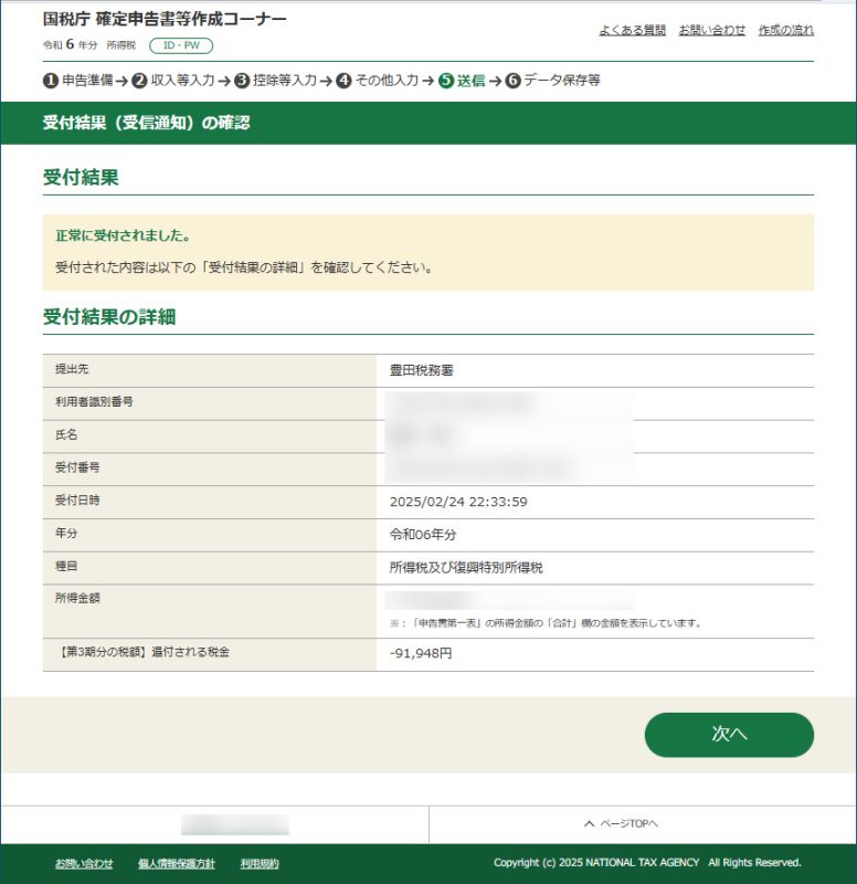 令和6年分確定申告終了 お金の話 2025年2月24日(月) 23:222025年2月27日(木) 9:32 今年は2月中に確定申告が終わりました。昨年から準備していたのでスムーズに進みました。もともと年金生活者で所得税を多く納めていないので、還付される所得税は例年に比べて少ないです。保険料支払証明書や医療費領収書等の関係書類を封筒に入れて保管ボックスに入れて、あとは問題なく還付されるのを待つばかりです。