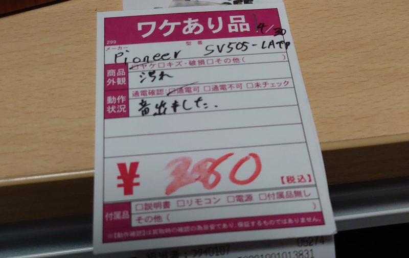 何年ぶりかにブックオフに行ってきました。目的は不要な本(ほんの一部)の処分。査定待ちに店内を見ていたら、280円のスピーカーと110円の高田みづえのLPレコードを買ってしまいました。全部で390円です。スピーカーはハードオフのジャンク品と違い、音が出ないなどの不具合があれば返品可能というのも驚き。本は14冊で510円。200円と250円以外はすべて5円。以前は最低10円だったような記憶があるのですけどね。ブックオフは買い取りが安いのはわかっていましたが、処分なので値がつけは御の字です。スピーカーとLPレコード手に入れて120円のプラスで良かったかなと思ったけど、ガソリン代入れたらマイナスか。😅