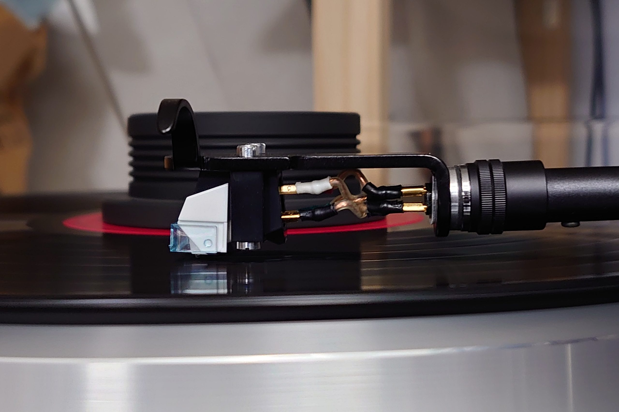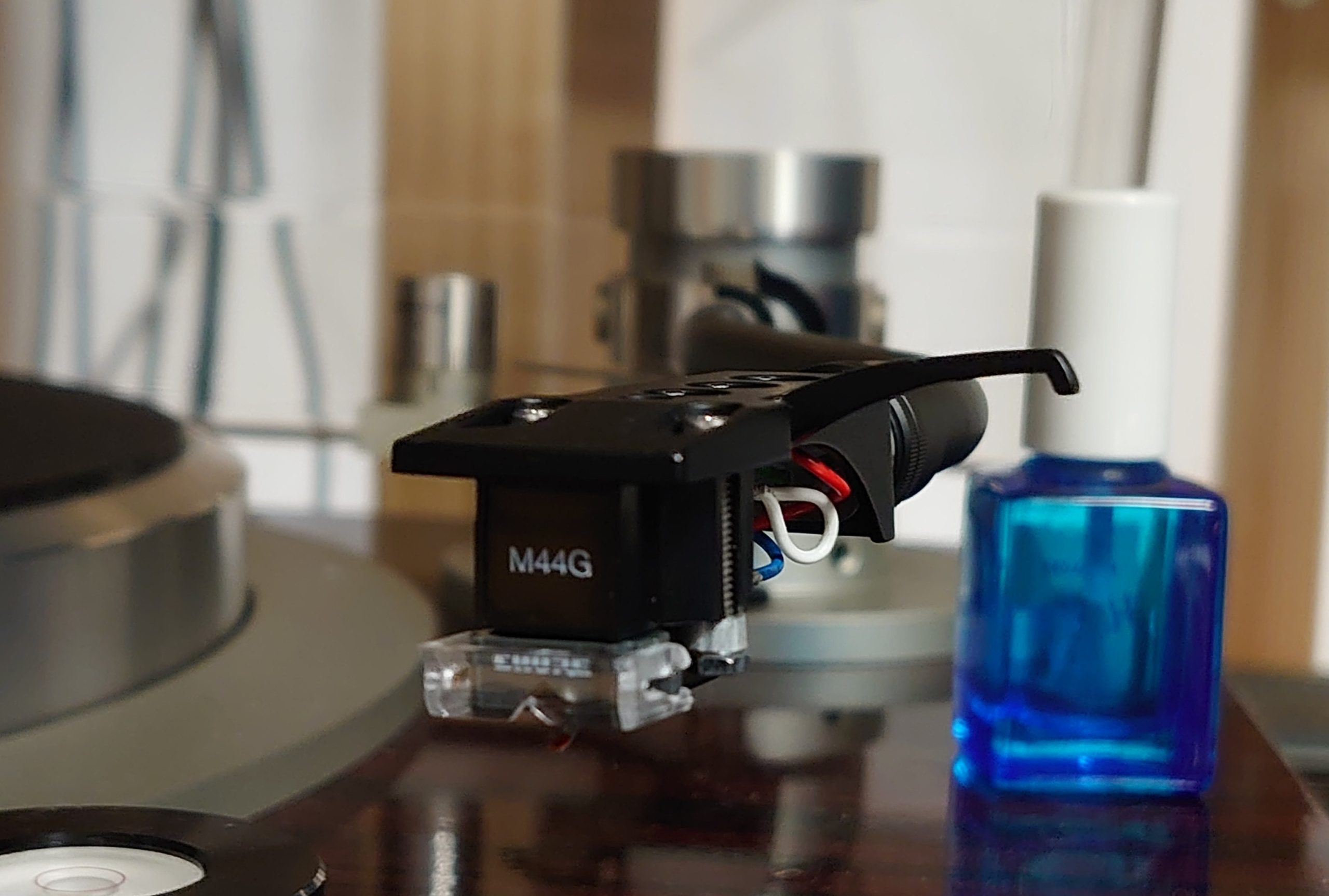 レコードを聴くのに今はSHURE M44Gというカートリッジを使っています。このカートリッジの音はとても元気で聴いていても楽しいのですが、サ行の音がちょっと歪みっぽく再生されることがあってそこだけが気になっていました。そこで、安くて評判の良い中電MG-3645(中部電力ではありませんし中国メーカーでもありません。日本のメーカーで製品は日本製です)というカートリッジを買ってみました。ヘッドシェルは手持ちはあるのですが、一応純正タイプHC-001も購入しました。カートリッジはポイント使って14,000円。ヘッドシェルは全部ポイント使って0円です。手持ちのヘッドシェルはネジの長さが合わなかったので、HC-001を使うことにし、頼りないリード線だけは手持ちのヘッドシェルのものを使うことにしました。オーバーハングを合わせて、SHURE M44Gと取り替えて、トーンアームの水平とバランスを取って針圧2.2gをかけて視聴。第一印象はM-44Gよりおとなしい。しかし、音はちゃんと前に出ています。聴き込むと、このカートリッジはとても素晴らしいことがわかりました。バランス良くてナチュラルで高音域の伸びもよくてキレがあってとてもきれいな音、しかも楽器やボーカルがきちんとわかれてしっかりと定位しています。聴こえていなかった音がして情報量も豊か。M44Gのようながさつで疲れる感じは皆無で、ボリュームを上げても破綻しません。あらためていろんなレコードを聴き直したくなります。もうM44Gには戻れないかも知れません。