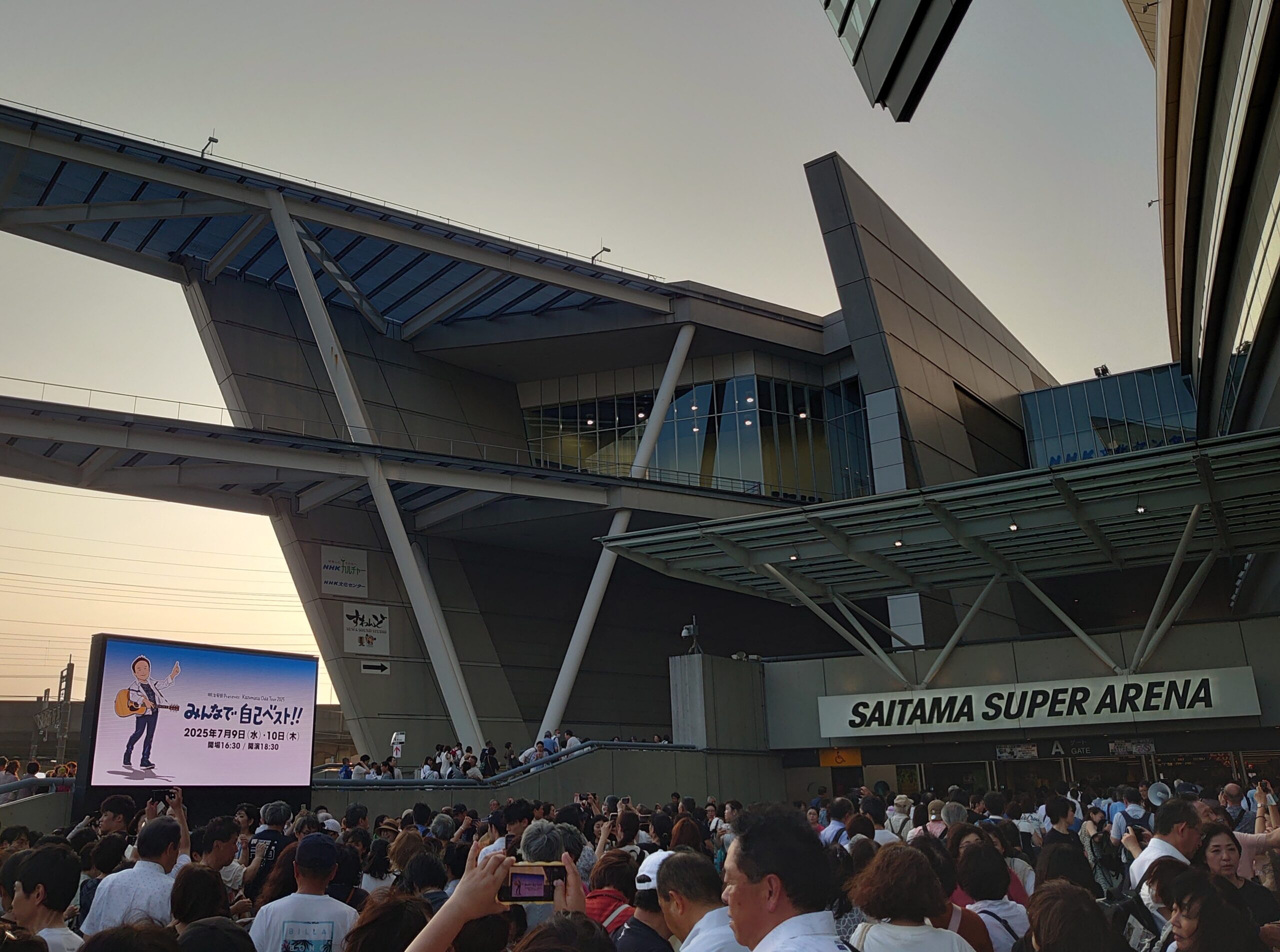 さいたまスーパーアリーナの小田和正コンサートから、ただいま戻ってきました。本当は娘たちと1泊予定だったのですが、奥さんと私は、10日の朝に大事な説明を聞くために病院に行かなくてはいけないことになったので、娘たちを残して日帰りで戻ってきました。私にとって初めてのさいたまスーパーアリーナは、いろんな意味で凄かったです。コンサートも最高。とても盛り上がって楽しめました。愛車ヴェルファイア君は快調、今回もガソリン補給無しに頑張ってくれました。コンサートの自分用の記録レポートはまた後日にまとめようと思っています。