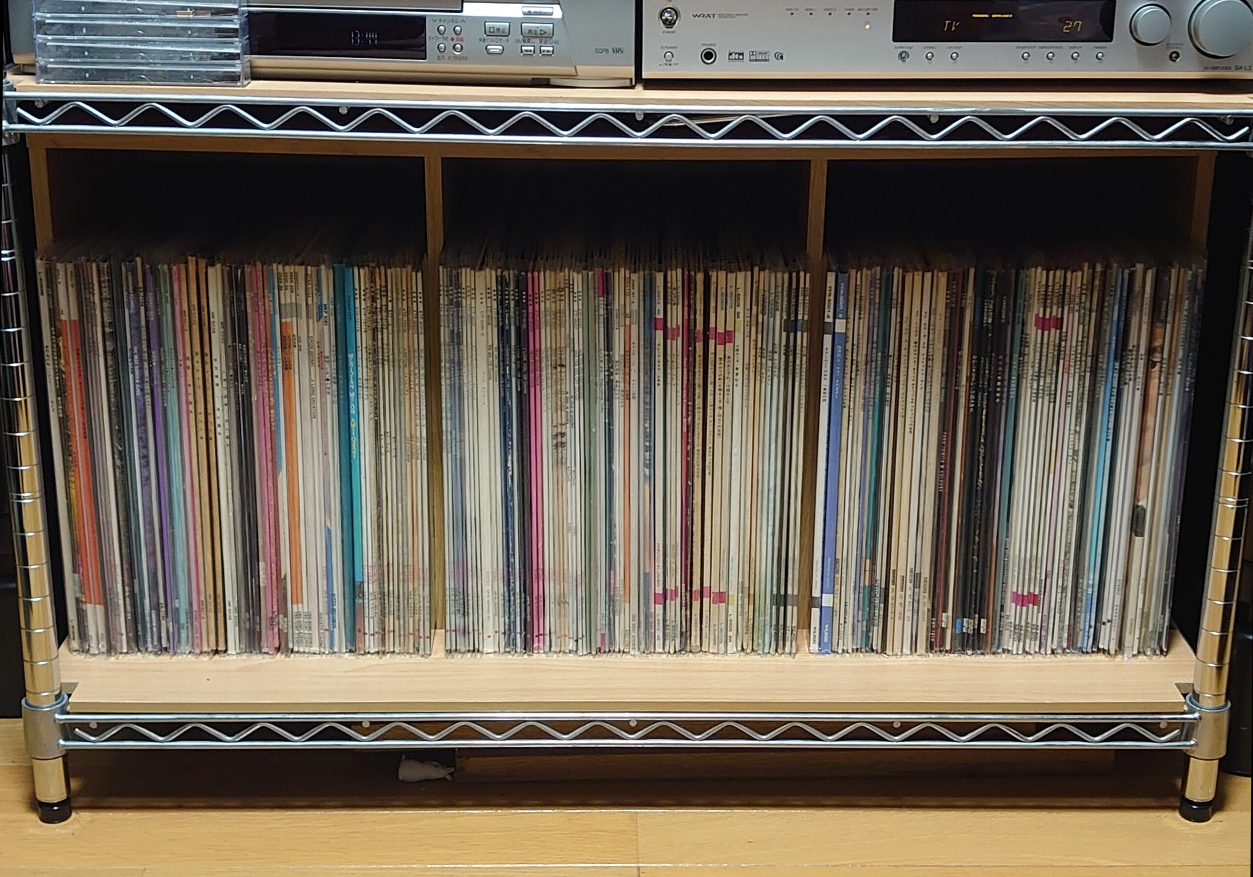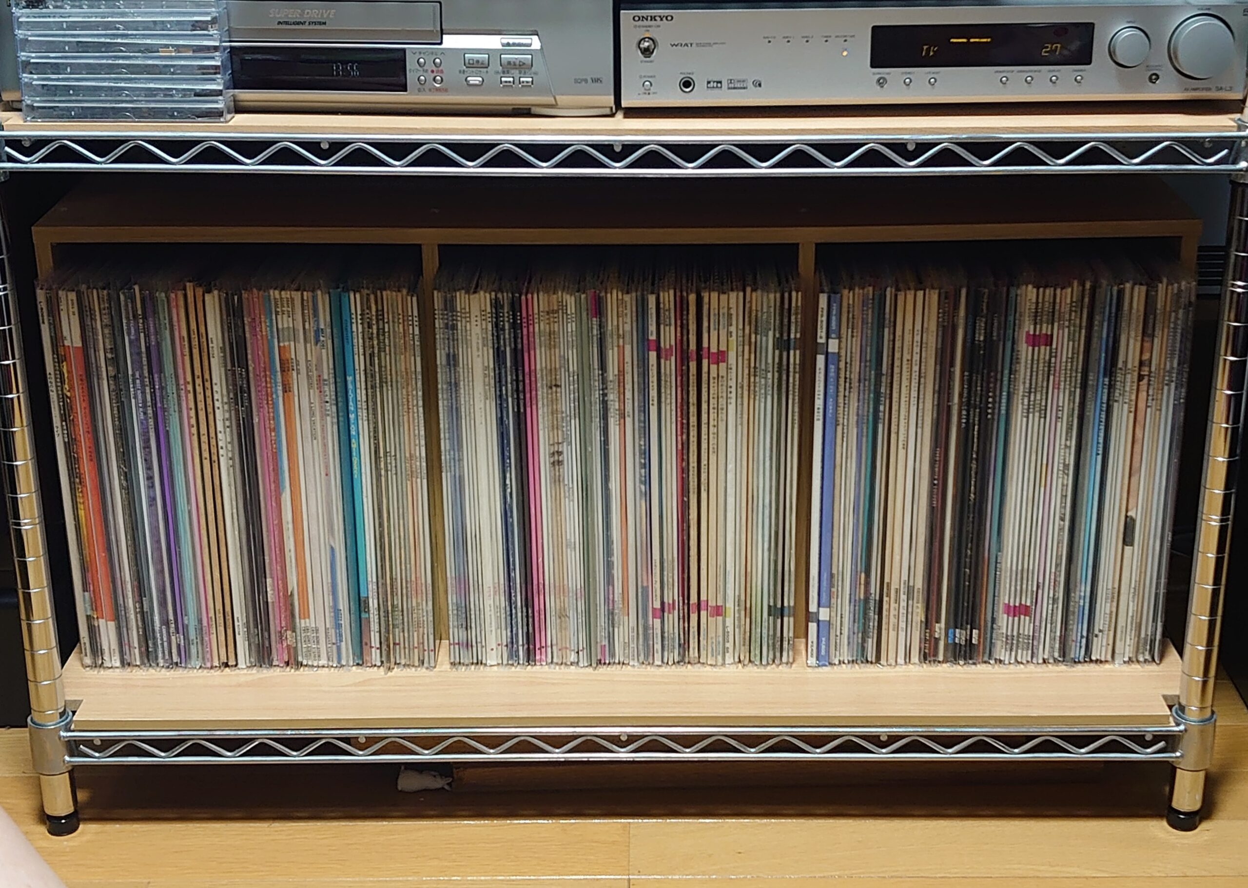 5cm縮小 日記/出来事 2025年8月14日(木) 15:18 カラーボックスを横にしてレコードを入れるようにしたのですが、上の部分に無駄な空間があるので、カラーボックスの幅(横にすると高さ)を5cm縮めました。最近のカラーボックスはパーティクルボードを使っているので、切っても問題ないのがいいところです。