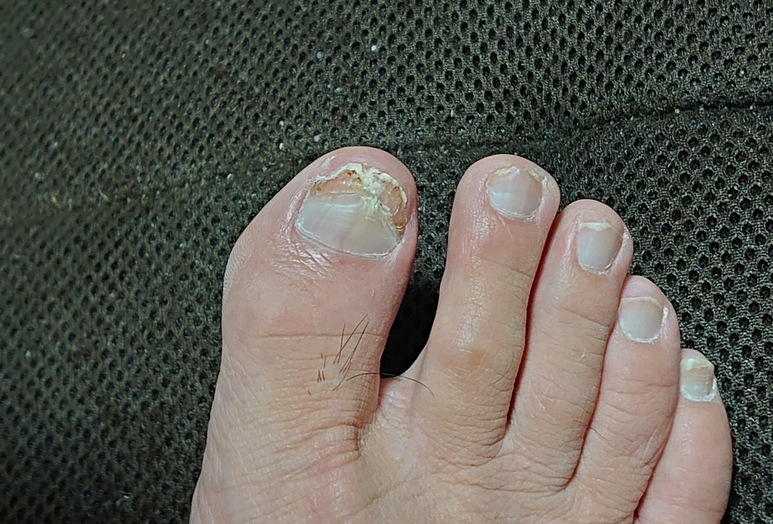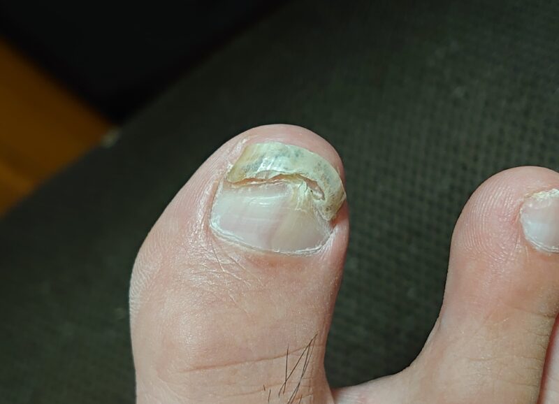 右足親指の爪、再生 日記/出来事 2025年9月3日(水) 21:302025年9月4日(木) 3:00 1月にアンプを落として骨折した右足の親指ですが、今朝起きたら黒く変色して盛り上がっていた爪が取れていました。夕方、パソコン机の椅子の下に剥がれた爪を見つけましたので、昨夜寝る前に取れたようです。3枚目の写真は剥がれた爪を取れる前のように乗せてみたものです。ここまで来るのは長かったです。このせいで散歩もできなくなっていましたから。爪の再生能力は大したものです。最後の写真は3月の頃の写真です。