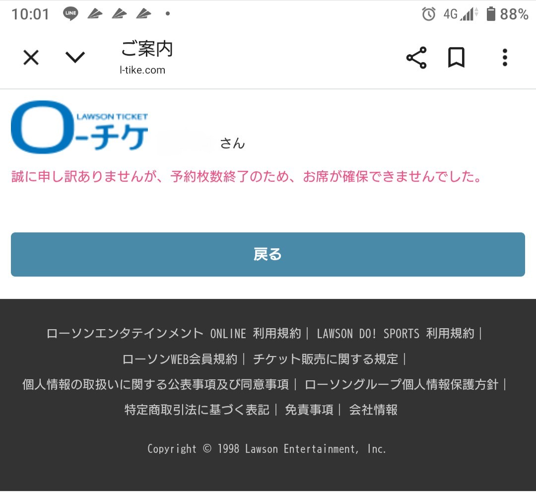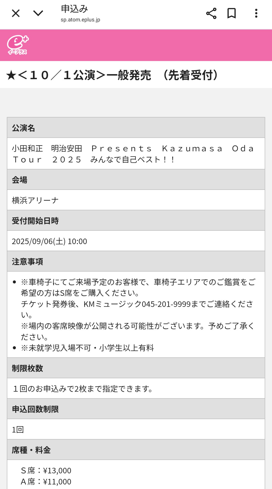 望みは完全に絶たれました コンサート 2025年9月6日(土) 10:31 最後の望みの先着順一般販売でしたが、ローチケ、ぴあは1分後には予定枚数終了。イープラスはなかなか接続できず、やっと購入ページに入れたと思ったら、予定枚数終了の✕マーク。最後の望みも絶たれました。購入できた方、おめでとうございます。高額転売などせずに、参加して楽しんできてください。これで、来週の大阪城ホールが最後の参加となることが確定しました。