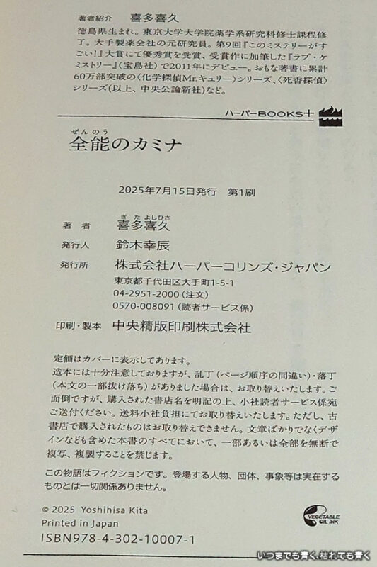 面白そうなあらすじだったので買って読んでみました。途中までは「全能のカミナ」がどういう力を使って物語が面白くなるのかという期待で読み進めたのですが、いくら読んでもカミナの能力が連続殺人事件に解決に有効に働きません。それよりも、退屈しのぎにカミナに近づいて、全能のカミナが本物なのか、何か刺激的な出来事に遭遇できるかという「僕」の思いばかりが前面に出る物語で、思っていた面白さとは異なっていました。全能のカミナという人物の魅力も感じませんし、犯人もミステリーとしてはずるい感じがしますし、結末も釈然としませんし、消化不良で終わってしまう作品でした。詳しい感想や書籍情報に興味のある場合は下記ホームページをご覧ください。