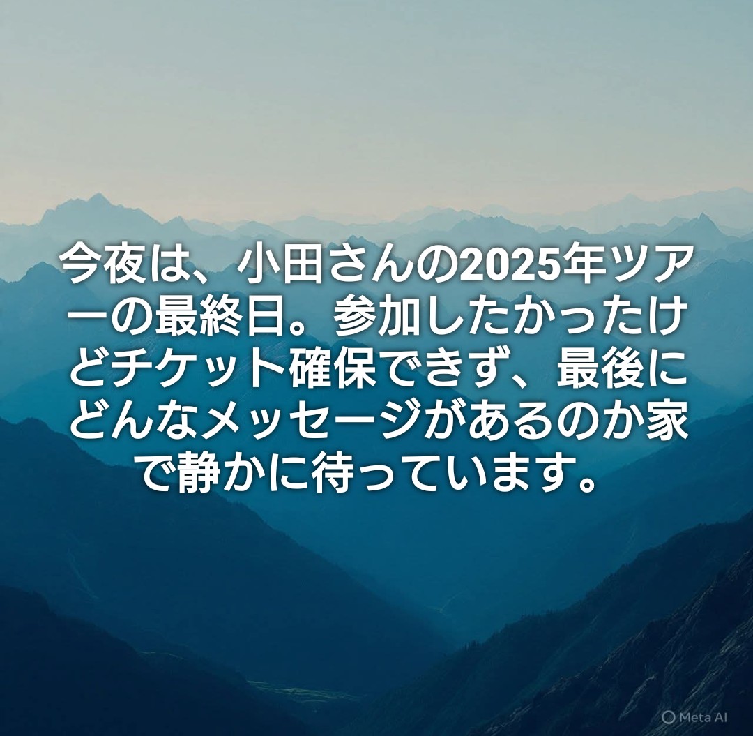 また会えるのか、もう最後なのか… コンサート 2025年10月1日(水) 12:25 今夜は、小田さんの2025年ツアーの最終日。参加したかったけどチケット確保できず、最後にどんなメッセージがあるのか家で静かに待っています。
