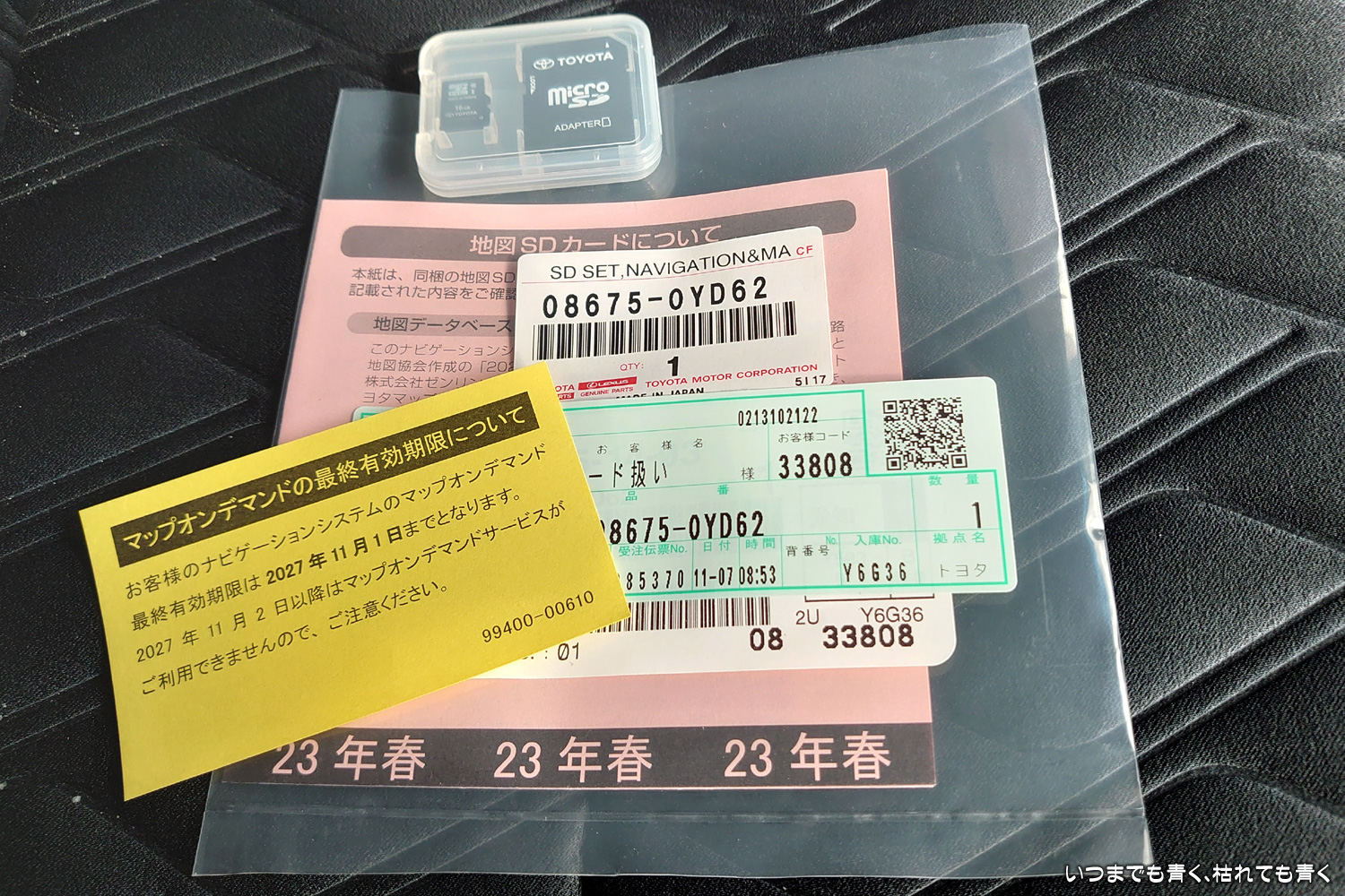 一昨日注文して昨日引取ってきたヴェルファイアのナビ地図SDカードを使って、ナビの地図データを更新・最新化しました。まず、ナビに地図SDカードを挿入して、ナビと地図SDカードを紐づけてからパソコンで全国の地図を最新化します。2023年春からの更新分のダウンロードとSDカードへの書き込みなので、20分弱かかりました。それをナビにセットすると作業完了です。いままで表示されていなかった国道23号線バイパス(名豊道路・豊川為当ICから蒲郡IC間2025年3月開通)の表示がきちんとされたことを確認できました。高価な地図SDカードを買わずにスマホのGoogleMAPを使えばいいかなとも考えたのですが、ヴェルファイアのナビの地図データ最後となる今後2年はもう一度ナビ本体で便利に使うことを選びました。