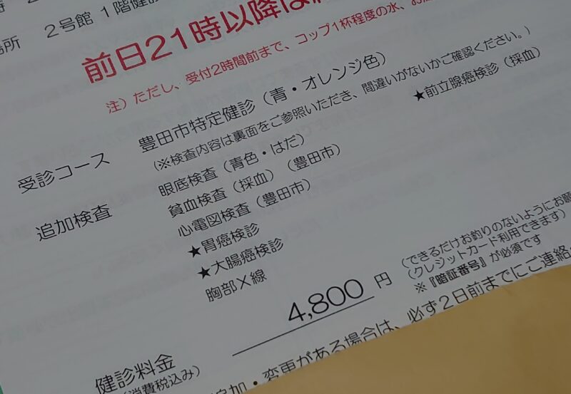 今日は今年の健康診断の日。いつもは人間ドックを受けているのですが、私は人間ドックの結果によりCTやMRIの経過観察を受けていますし、奥さんは夏の手術時に全身PET-CTを受けているので、今年は市の特定健診でお安くすませました。それでも、胃がん検診、大腸がん検診、前立腺がん検診だけは補助券もあり追加したのですが、事前の問診で、経過観察で胸部CT受けているなら胸部X線は被ばくの関係でやめてもいい、胃がん検診はバリウムを希望したのですが、偶数年齢時は同じ料金で胃カメラが受けられるのでバリウムよりそちらのほうがいい(バリウムは被ばくもあり)というアドバイスを受けて、今回は胃がん検診と胸部X線はキャンセル(検診料−3,600円)としました。胃がん検診は、来週奥さんと一緒に胃カメラを受けることにしました。同時にピロリ菌の検査も受けて、それによって今後の胃がん検診をどうしていくかを決めることにしました。私は血液検査でピロリ菌は判定Aということにはなっているのですが、便での検査をしてそれでも問題なければ、胃がんの心配は無いと言い切っても良いらしいです。初めて受けた市の特定健診ですが、標準では30分もかからずにあっという間に終わる簡素な内容でした。大腸がん検診と胃がん検診と心電図だけが目的だったので、経過観察を受けている間はこれでいいと思いました。