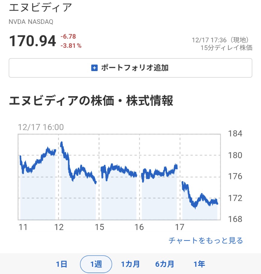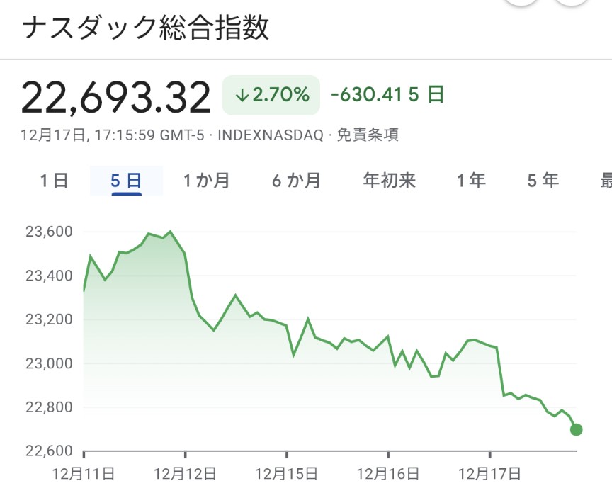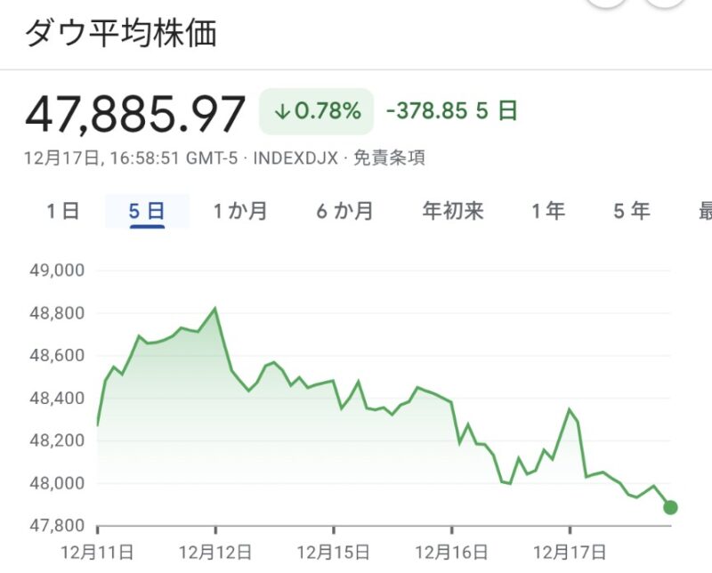 もうひとつの決算日 お金の話 2025年12月18日(木) 9:59 もうひとつ保有している毎月分配型ファンドの決算日が来週の月曜日です。なので決算日前日の明日の基準価額で今月の分配金が決まります。明日の基準価額は今夜の米国市場で決まります。ここ数日、そして昨夜もNYダウとNASDAQは大幅に下げました。今日の基準価額は分配金300円のラインギリギリなので、今夜の米国市場の動きで今年最後の分配金が決まります。頼りのNVIDIAが低迷しているのが良くないですね。最近、こういう綱渡りが続くので毎回ハラハラドキドキです。