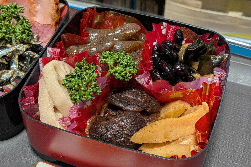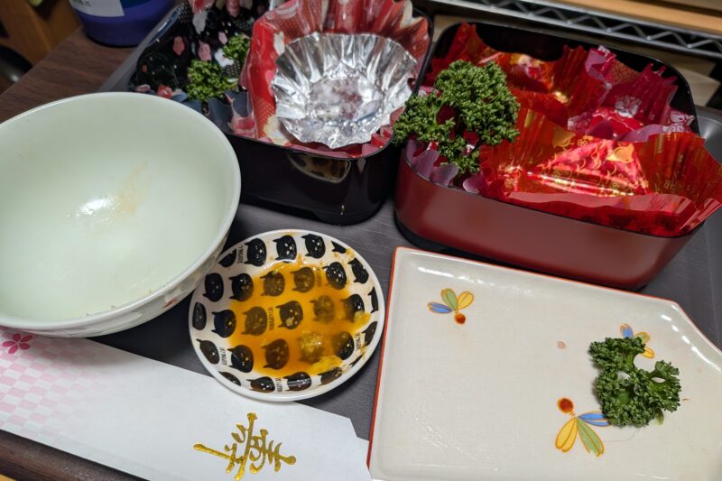 今日も、好きなものを入れてもらったおせちと刺身でご飯をいただきます。きのこご飯はおかわりしたくなるほど美味しかったですが、大盛り1杯だけにしておきました。おせちの中で一番好きなのが田作り。地味ですが、この味と噛み応えが大好きなのでたっぷりと入れてもらっています。椎茸もタケノコもレンコンも黒豆も好き。捻ったコンニャクもカマボコもいいです。私の好きなおせちはもともと安上がりなものばかりなのですが年々高くなってきています。なお、幼い頃から正月は殺生をさけるということで四足歩行の動物の肉は控えていた家だったので、正月に肉を進んで食べることはありません(二足歩行の動物や魚は食べるので説得力は乏しいですが)。それと、数年前からお餅は私にとって危険食物扱いなので、お雑煮も焼き餅も食卓に乗りません。そんな我が家の正月料理、今日も完食です。
