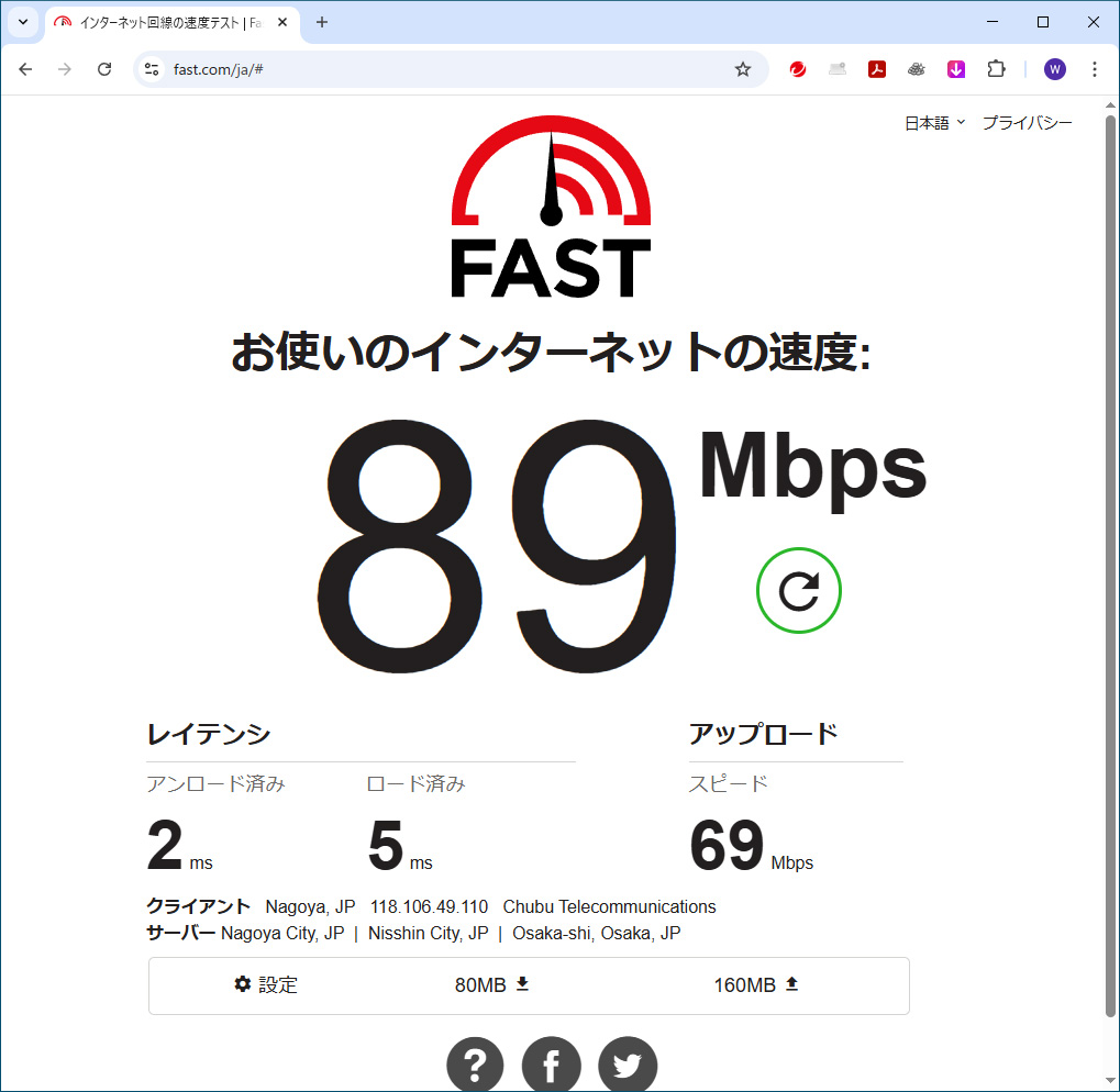 「家族のテレビはひまわりネットワーク」、「私の部屋のテレビとインターネットと電話はコミュファ光」という契約を本日、ひまわりネットワークに一本化しました。別に気にしていなかったのですが、事前のひまわりネットワークの人に勧められて計測したインターネット速度がどうなったのか確認すると・・・コミュファ光の時は89Mbps、それがひまわりネットワークにしたら94Mbps。「少しは良くなったのかな」と今日の工事の人に言ったら、「この数値はあり得ない。コミュファでも遅すぎ。LANケーブルが1Gbps対応していないカテゴリー5じゃないですか?」と言われて確認してみると、モデムとパソコンの間のケーブルのみカテゴリー5。モデムとテレビとのインターネット接続はカテゴリー6のケーブルでした。手持ちのケーブル類を捜したら、見栄えは良くないけどカテゴリー5eのものがあったので、それで接続して測定してみたら750Mbpsと格段の向上。動画など扱わないので不便はしていませんでしたが、ひと昔の環境でパソコンを利用していた自分が恥ずかしく情けないです。そしてふと家を建てた時に屋内配線してもらった各部屋へのLANケーブルの規格を調べたら、なんとカテゴリー5。屋内LAN配線を使っているところはLANケーブルを差し替えないといけないようです。1Gbps対応のカテゴリー5eが普及し始めたのは2001年頃なので、この家を建てた2001年は採用されるかどうかギリギリだったようなので、建築会社に今更文句も言えませんねぇ。