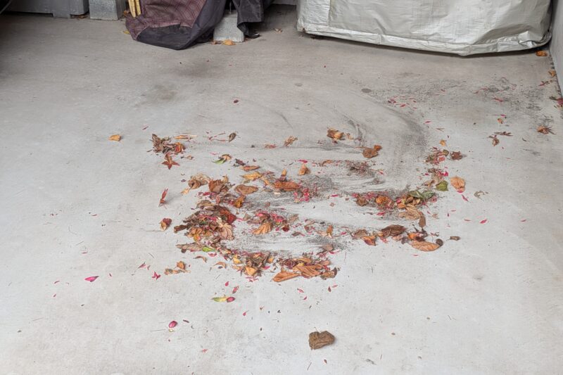 強い風の日のあとは… 日記/出来事 2026年1月12日(月) 10:15 昨日のように強い風が吹くと、ガレージの車の下に落ち葉や砂がたくさん集まってきています。奥さんがクルマを使って出かけたあとにゴミ出しのために外に出たら、その落ち葉が気になったので掃除しました。今朝は雪がチラホラ舞う朝でした。