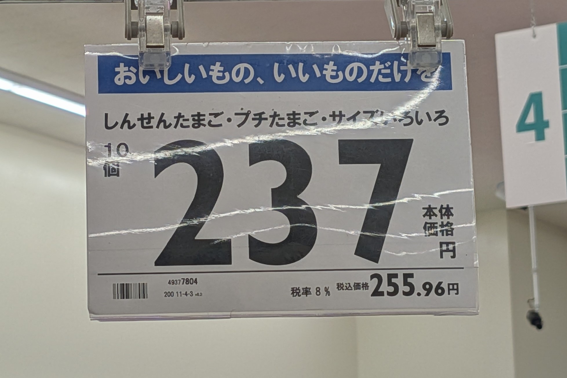 私の朝食のために2年ほど前から3日に一度スーパーに行く私ですが(2回に1度くらいは奥さんとふたりで)、朝食3日分の6枚入食パンは87円、野菜ジュースは197円、ロースハムは157円、もずくは99円と、これらはあまり変わっていません。しかし、米は2,000円台が3,599円(山形県産はえぬき5kgの場合)、卵10個入りが100円台が237円など、値上がりを感じて安いものをさがしてしまうものもあります。そして高くなって買わなくなったのがブレンディやネスカフェのスティックコーヒーで、ちょっと前までは300円台で買えたものが今は500円を超えています。嗜好品なので買い控えていますが、こういうところで物価高を感じてしまいます。(価格は税抜)