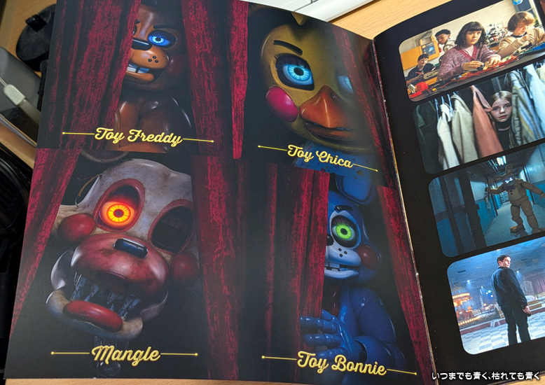 私は、第1作のストーリーを詳しく覚えていなかったので、登場人物が第1作から繋がっているということを明確に意識できずに観ることになってしまいました。この映画だけでも楽しめることは楽しめますが、第1作、そしてゲームまでをちゃんと理解できていると、よりひとつひとつのシーンに隠された意味まで楽しめるようです。家族は怖いという印象を持ったようですが、私は怖いかどうかといえば、それほどでもないという感じでした。突然の大きな音などで驚かせるジャンプスケアという手法は随所に織り込まれていましたが、それはびっくりするだけで怖いというものではありませんでした。マスコットによる殺人シーンも、行為だけで残虐な映像にはなっていません。それにしても、こんな不気味なマスコットが子供に人気なのかが、よくわからないところです。
