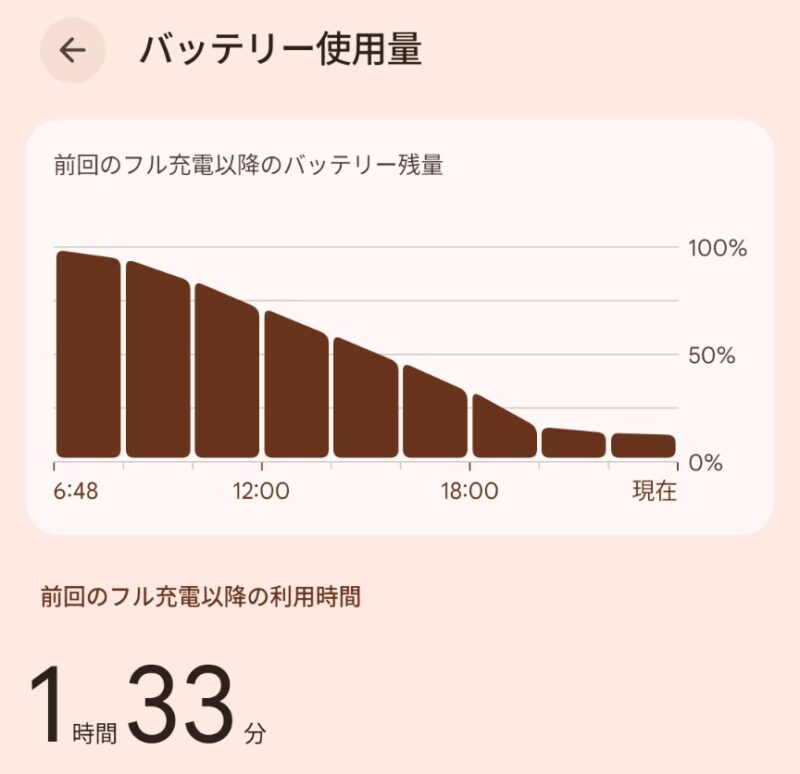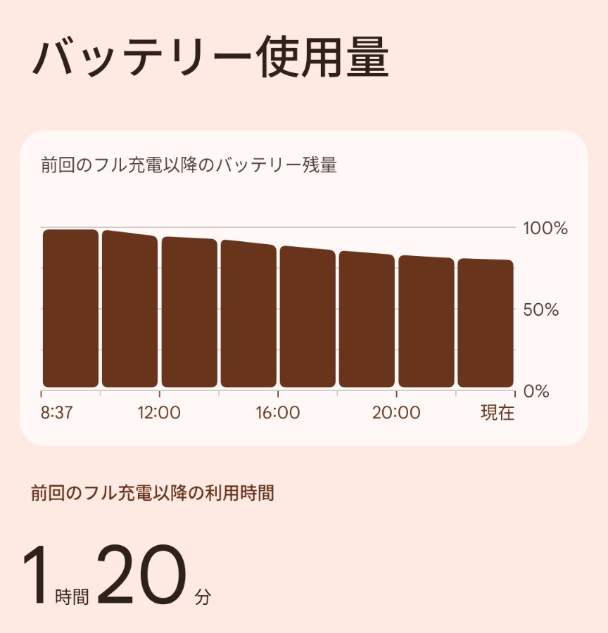 バッテリー消費改善! パソコン/スマホ/インターネットの話 2026年3月2日(月) 23:28 昨日、再起動とメールの削除をしたあとは異常なく、バッテリー消費が正常に戻りました。朝満充電すれば、夜まで使用しても70%から80%か普通だったのに、最近は夜には20%や10%でしたから異常でした。下は、1枚目が今日のバッテリー消費、2枚目が昨日のバッテリー消費。昨日の20時頃に再起動とメールの削除をしています。たぶん効いたのは再起動だと思います。たまには再起動も必要です。