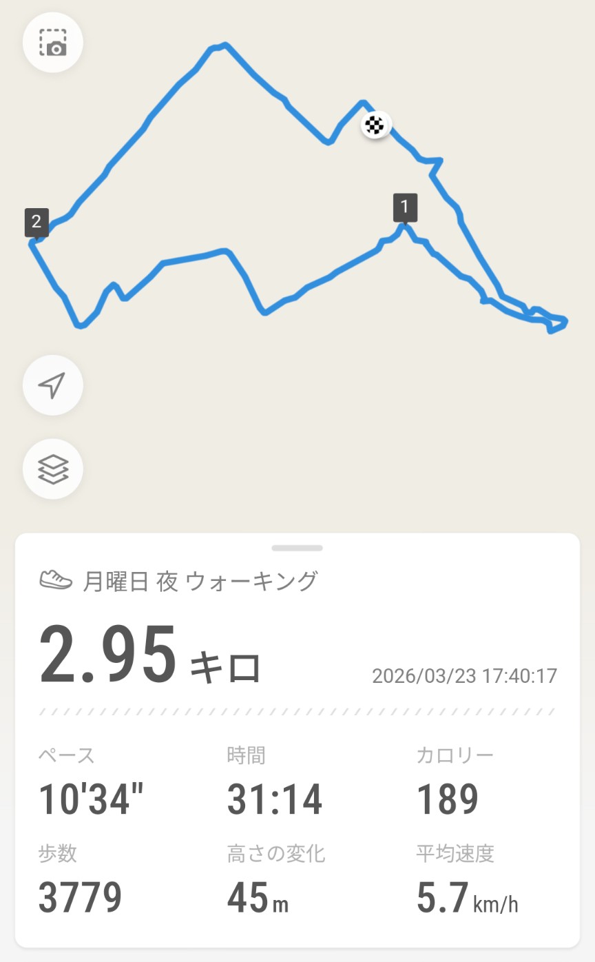 今日の散歩_20260323 健康の話 2026年3月23日(月) 18:342026年3月24日(火) 0:53 今日も夕方に散歩。久しぶりにガソリンスタンドの価格表示やセブンイレブンの空の写真を撮影。空き地だったところに家が建ったりと、歩かなくなった時間の長かったことを感じます。散歩は、体が重くて以前のように遠回りしたくなるような気持ちには全くならず、一心不乱に家を目指すという感じです。早く以前のような体に戻したいと思います。