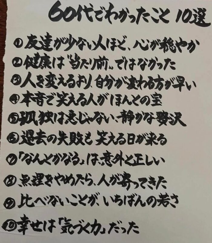 しっくりとくる内容 徒然の思いScreenshot 2026年3月27日(金) 20:06 ネットで拾った画像です。⑥と⑧だけまだそこまで達していませんが、その他は本当に身に染みて実感しています。たまたまだとは思いますが、私にはしっくりとくる内容でした。 Screenshot